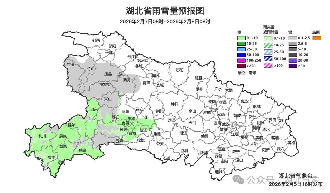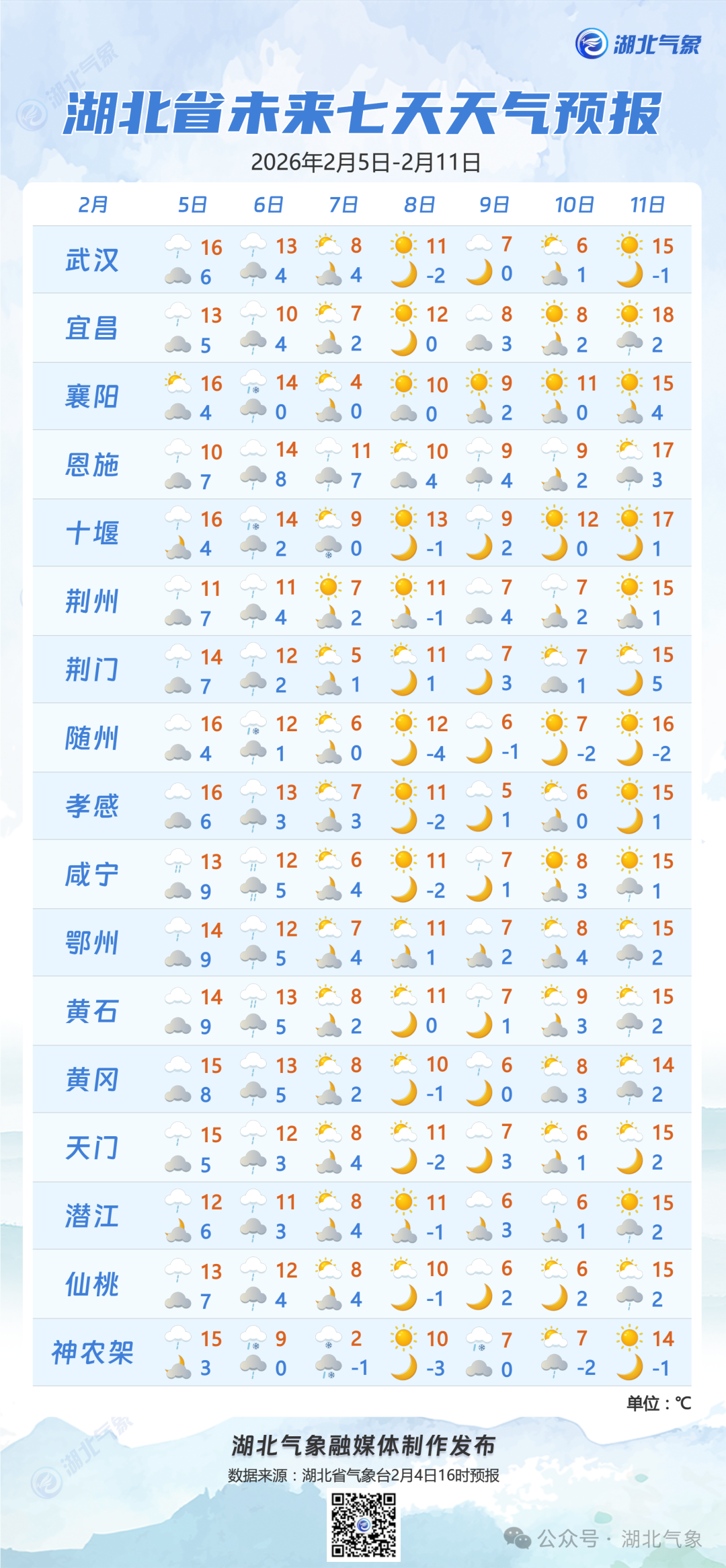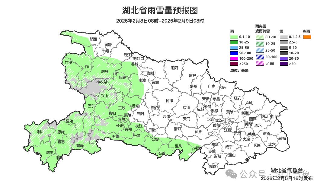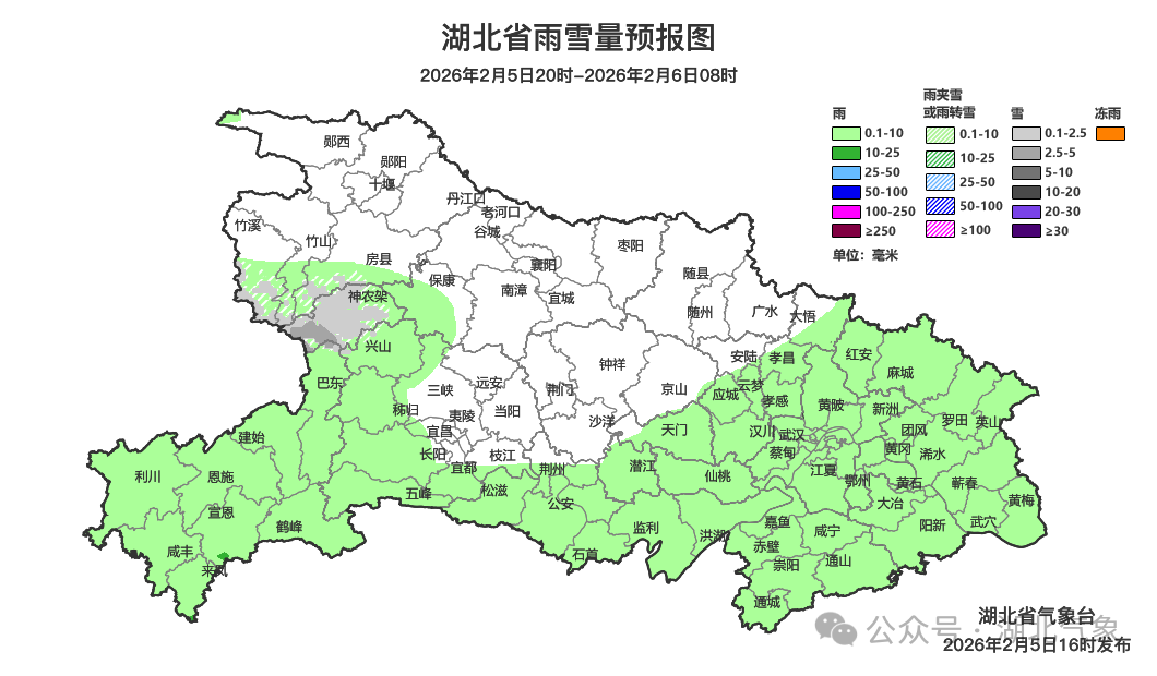 预报来源:湖北省气象台2026年2月5日16时预报
