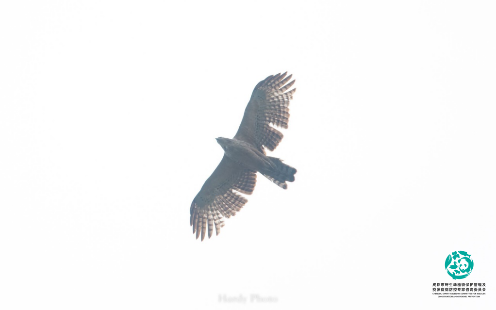 鹰雕(Nisaetus nipalensis),鹰形目鹰科,大型猛禽,翅形宽阔。国家二级保护鸟类。2021年4月,观鸟志愿者余欢在崇州市影像记录到1只。