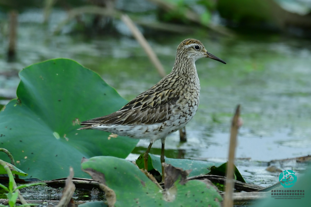 尖尾滨鹬(Calidris acuminata),鸻形目鹬科。中型滨鹬,体型粗壮,胸部为皮黄色,下体具有黑色箭状纵纹。属于国家“三有”保护动物。在我国东部地区为常见旅鸟。2021年9月观鸟爱好者朱晖在新津区首次记录到1只。