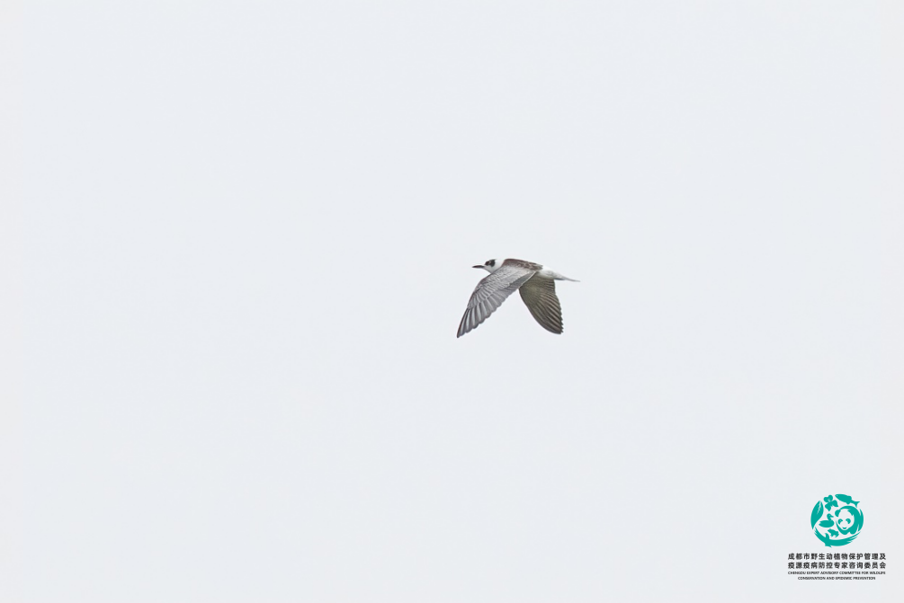 白翅浮鸥(Chlidonias leucopterus),鸻形目鸥科。中小型鸥类,与在成都有确切记录的灰翅浮鸥(Chlidonias hybrida)主要区别为冬季非繁殖羽头部黑色斑向下延伸,并超过耳部。监测团队2021年9月25日在温江区金马河记录到1只。该个体背部、翼上覆羽羽色较深,可能为亚成体或第一年冬羽个体。