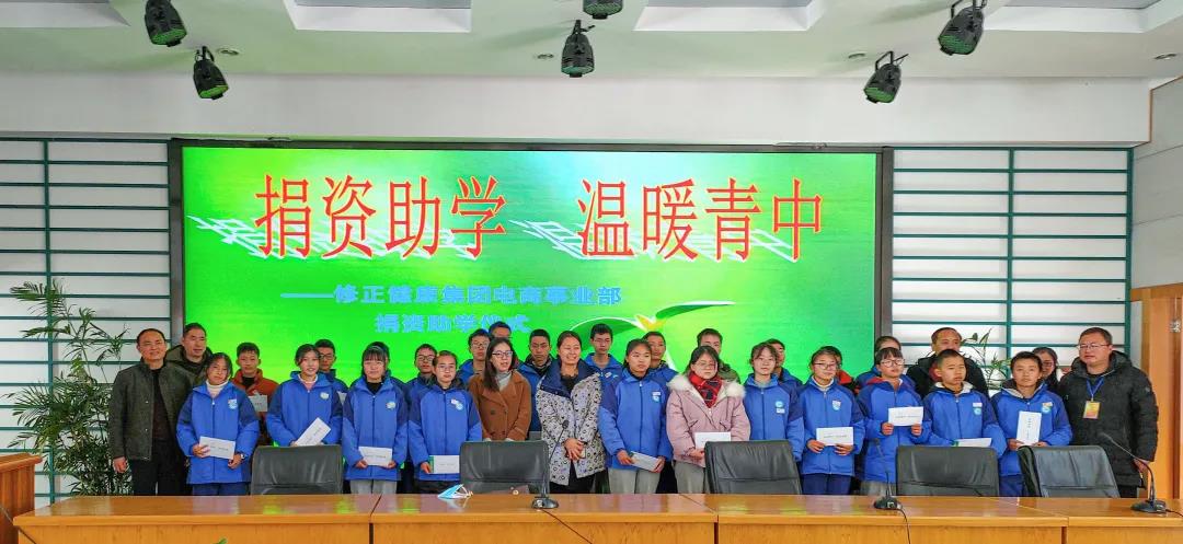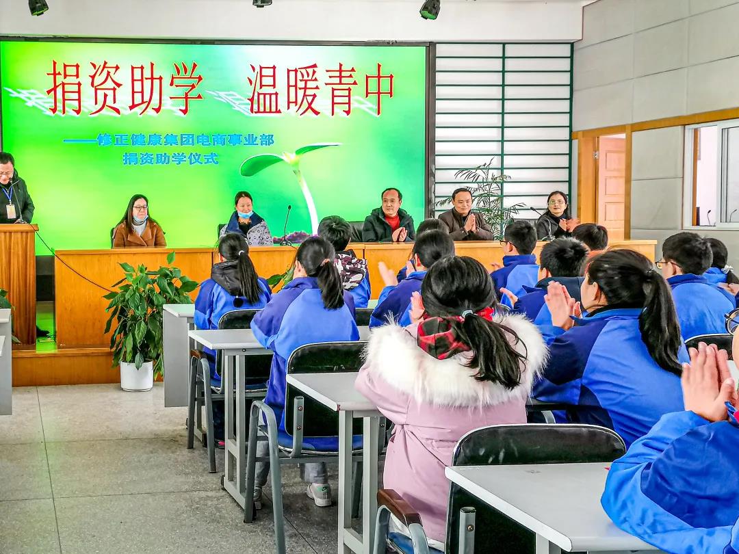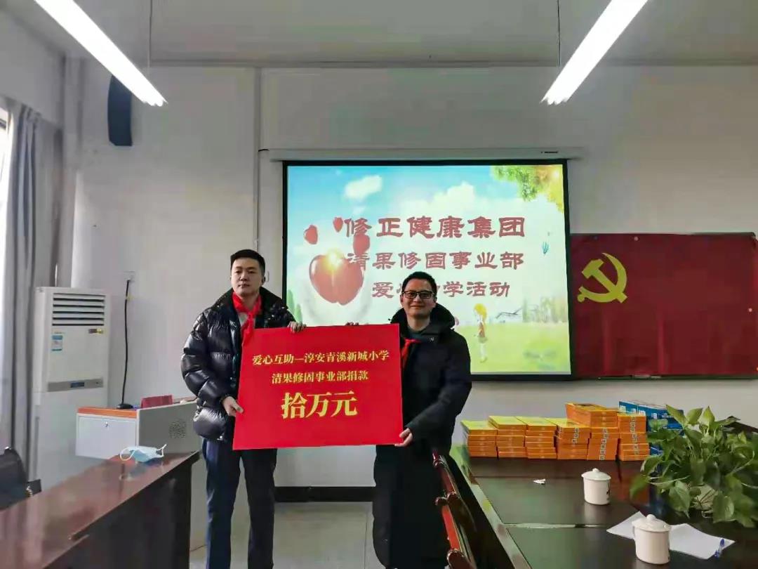 1月11日,修正健康集团电商事业部爱心人士代表赴千岛湖镇青溪初级中学,为24名学生送去100000元助学款。