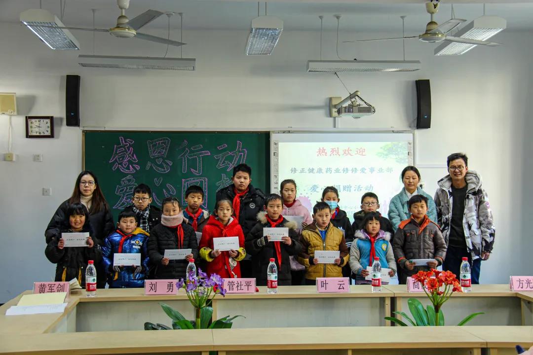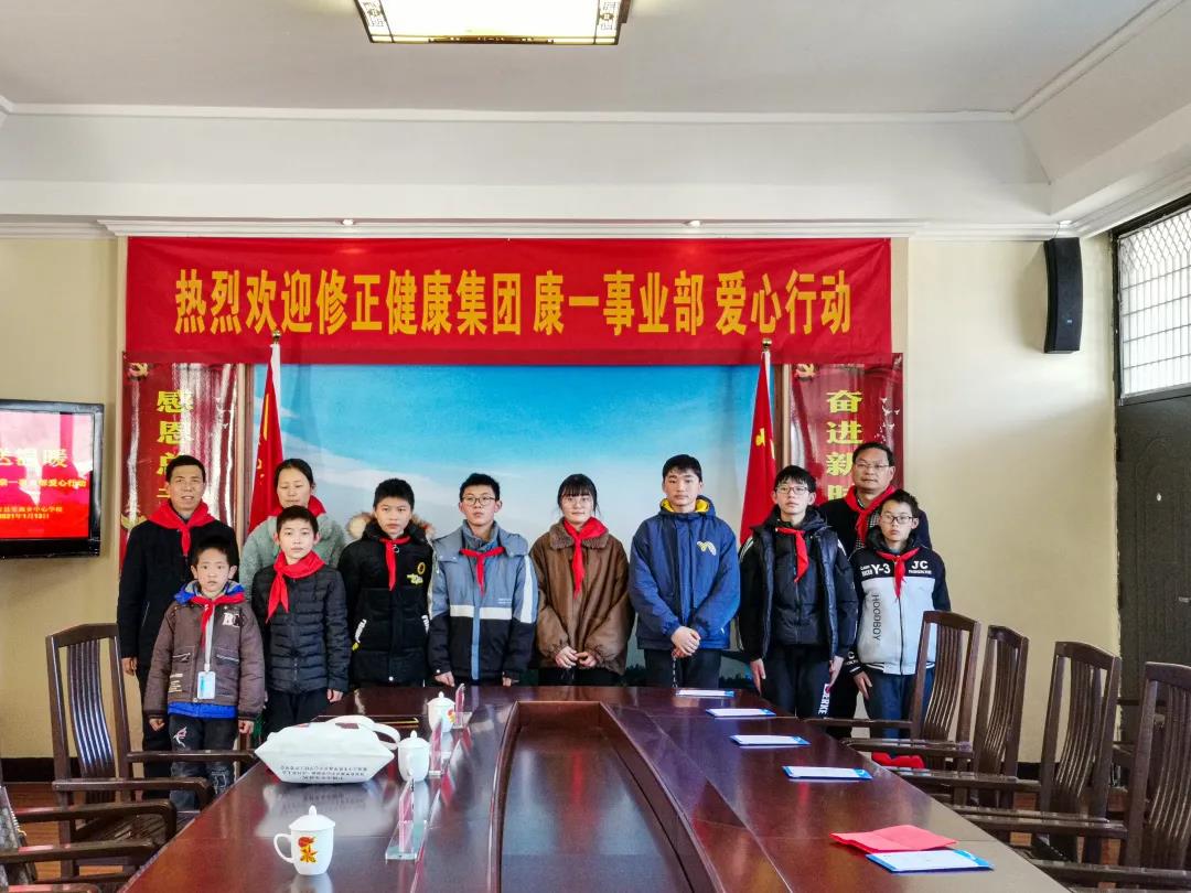 1月13日,修正健康集团康一事业部爱心人士代表赴里商乡中心学校为11名学生送去助学金,总金额50000元。