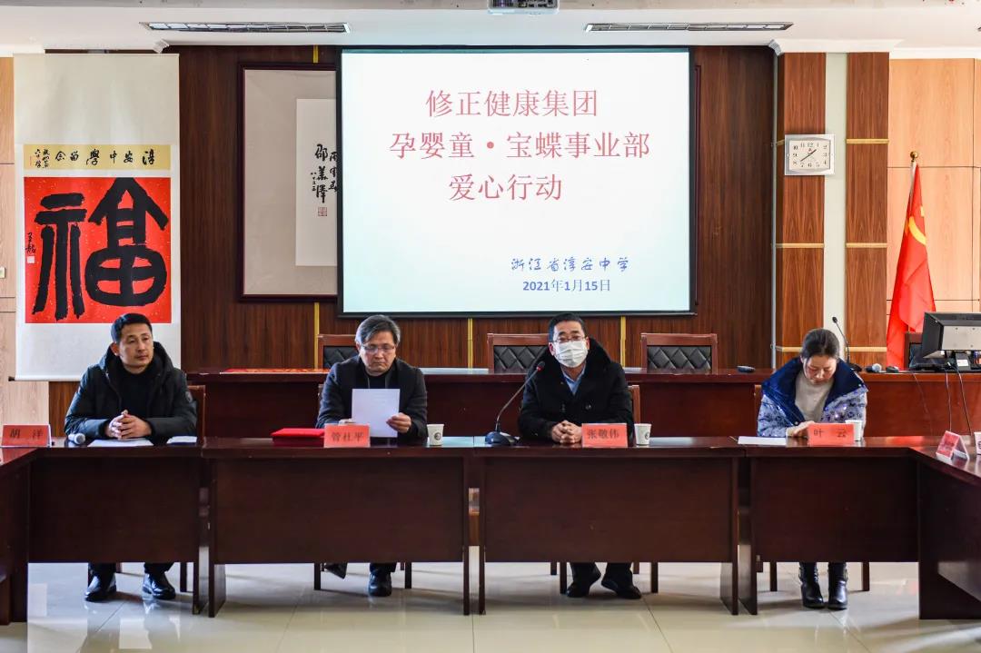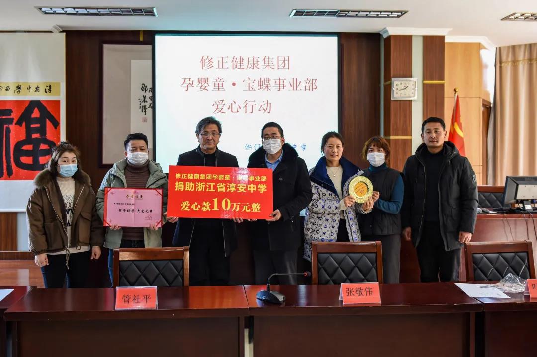 1月15日,修正健康集团孕婴童事业部和宝蝶事业部爱心人士代表赴淳安中学开展捐资助学献爱心活动。