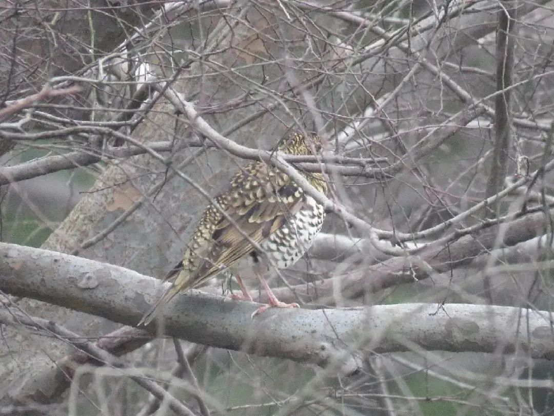 怀氏虎鸫 背部羽毛褐色,中间密布黑色斑点。