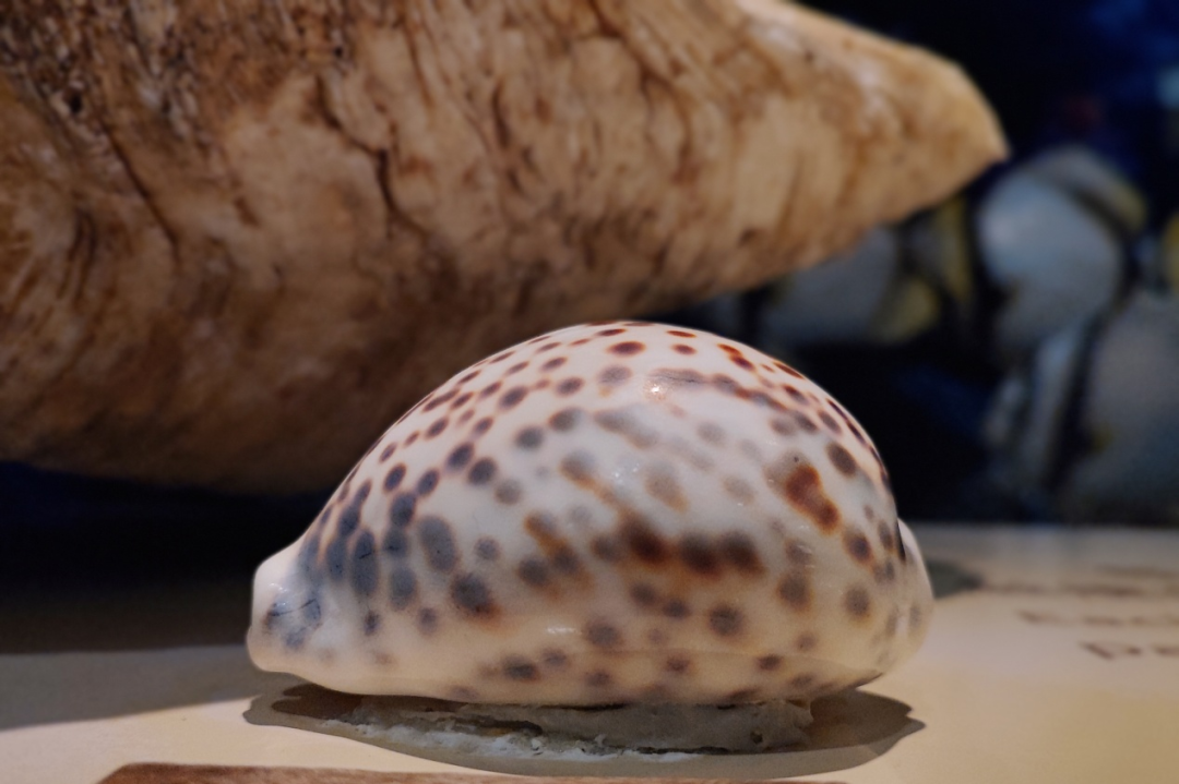 虎斑宝贝 表面光滑如瓷器,有珐琅质,具有白色或淡黄色的光泽,有大大小小的黑褐色斑点。准确来说,色彩图案如豹皮,虎和豹也算近亲,因此得名。虎斑宝贝为海洋濒危物种,属国家Ⅱ级保护动物,是宝贝科中体型最大的种类,成体壳长8~13厘米。