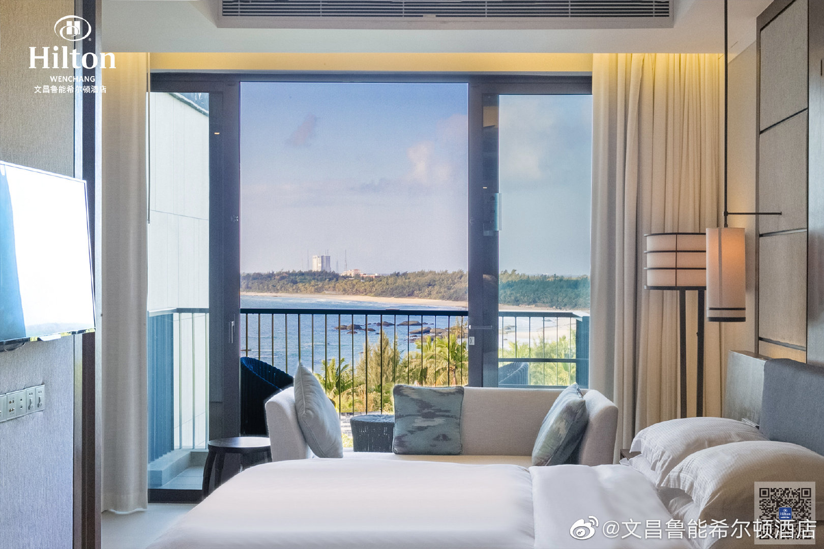 可以观看火箭升空的“航天海景房”。 微博 @文昌鲁能希尔顿酒店 图
