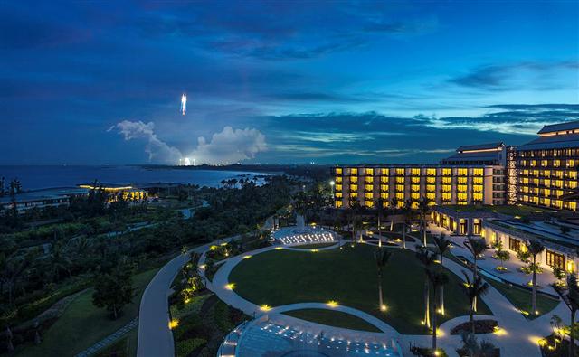 文昌鲁能希尔顿酒店是最佳观看点之一。 文昌鲁能希尔顿酒店官网 图