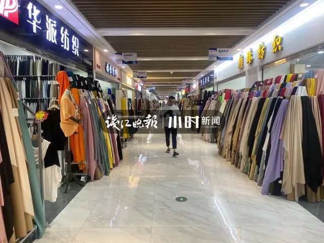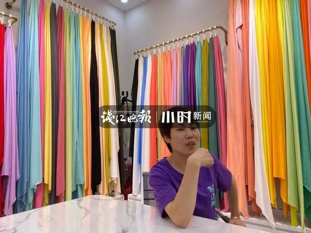 棉料衣服今年客户下单多,也让一楼卖针织棉面料的陈秀琴忙到不可开交。