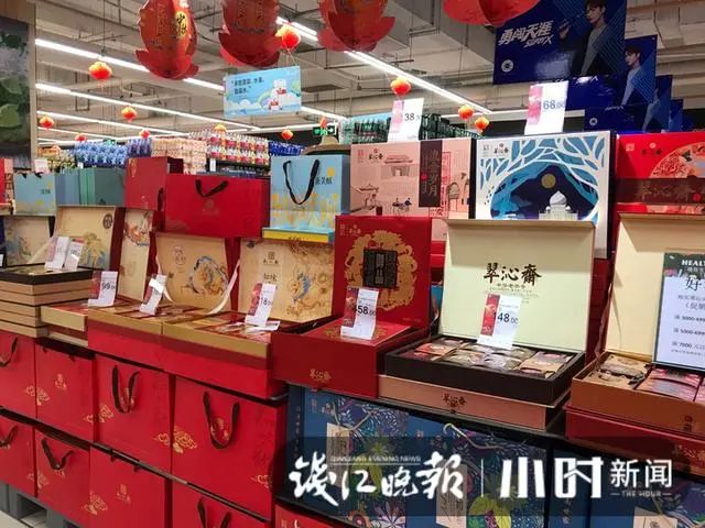 各大商超纷纷将C位留给了月饼礼盒,五花八门的包装,让顾客挑花眼。