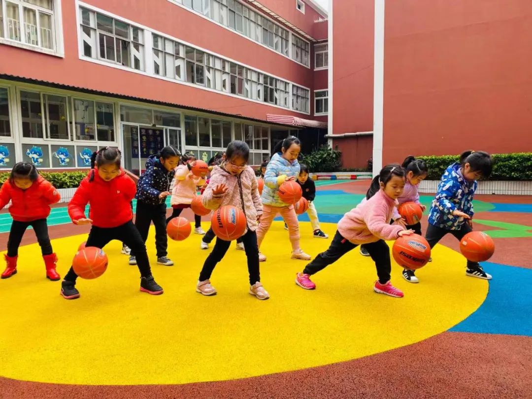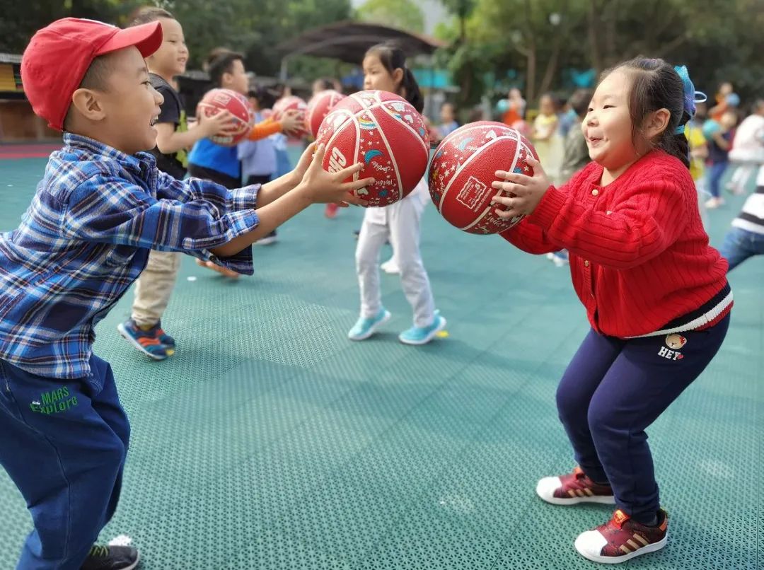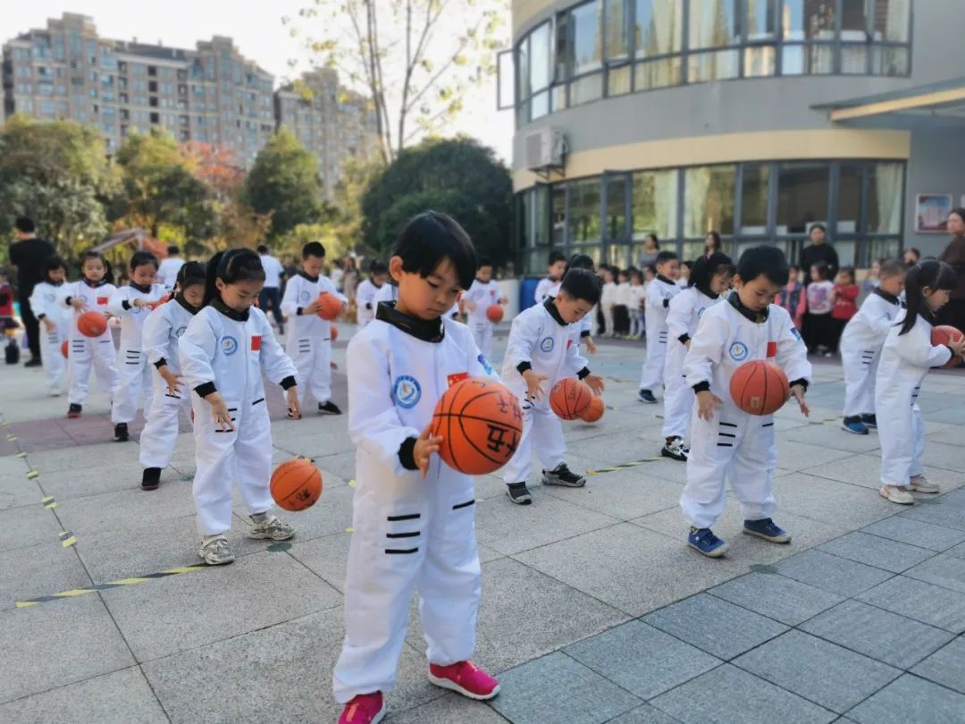 篮球也是不少小朋友做操的必备工具,别看一个个都是小豆丁,篮球走位可能比大人还熟练!