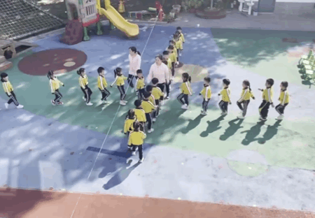 老师们向记者科普,幼儿园的课间操会根据孩子们的年龄和运动量,辅助不同器械,以游戏的形式融入课间操,队列变幻和互动性也都比较强,跟各个年龄的需求相符合,也有趣味性——