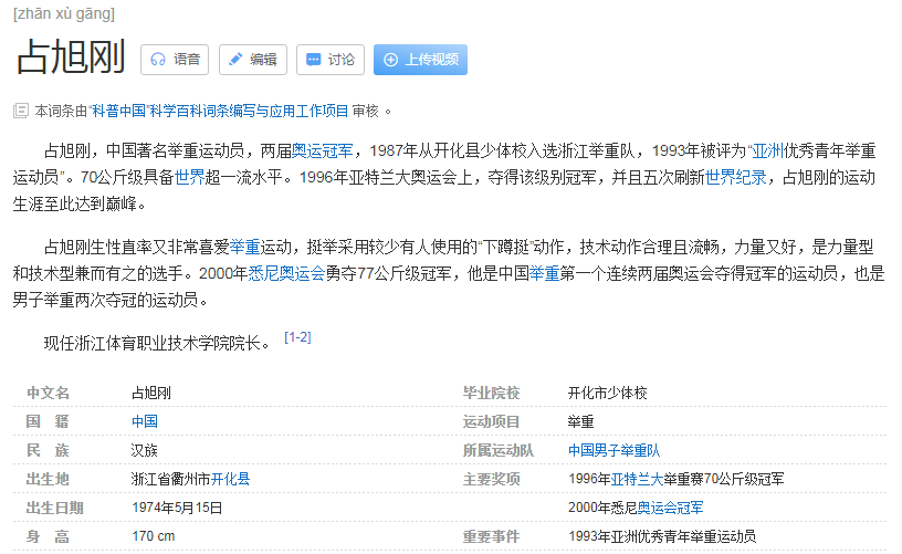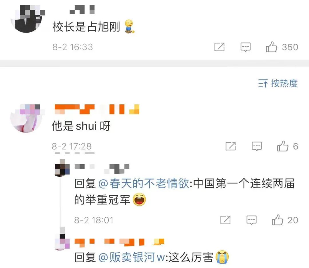 还有网友好奇去百度搜索,发现浙江体育职业技术学院的院长就是中国著名举重运动员、两届奥运冠军占旭刚。