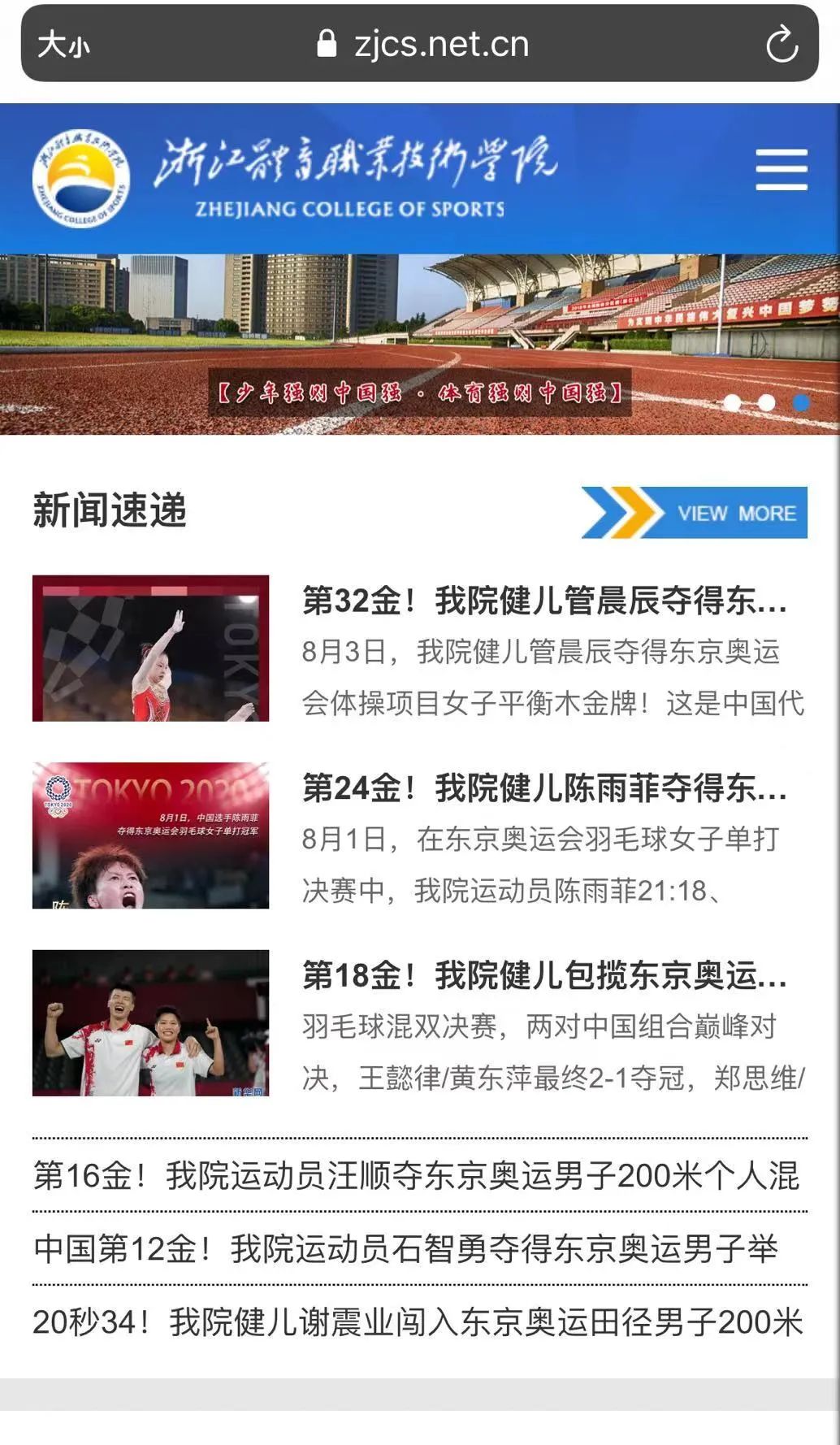 打开浙江体育职业技术学院官网,奥运奖牌刷屏,太有排面了——
