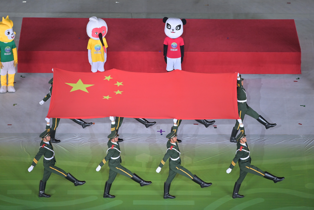 旗手护送中华人民共和国国旗入场。图源:新华社