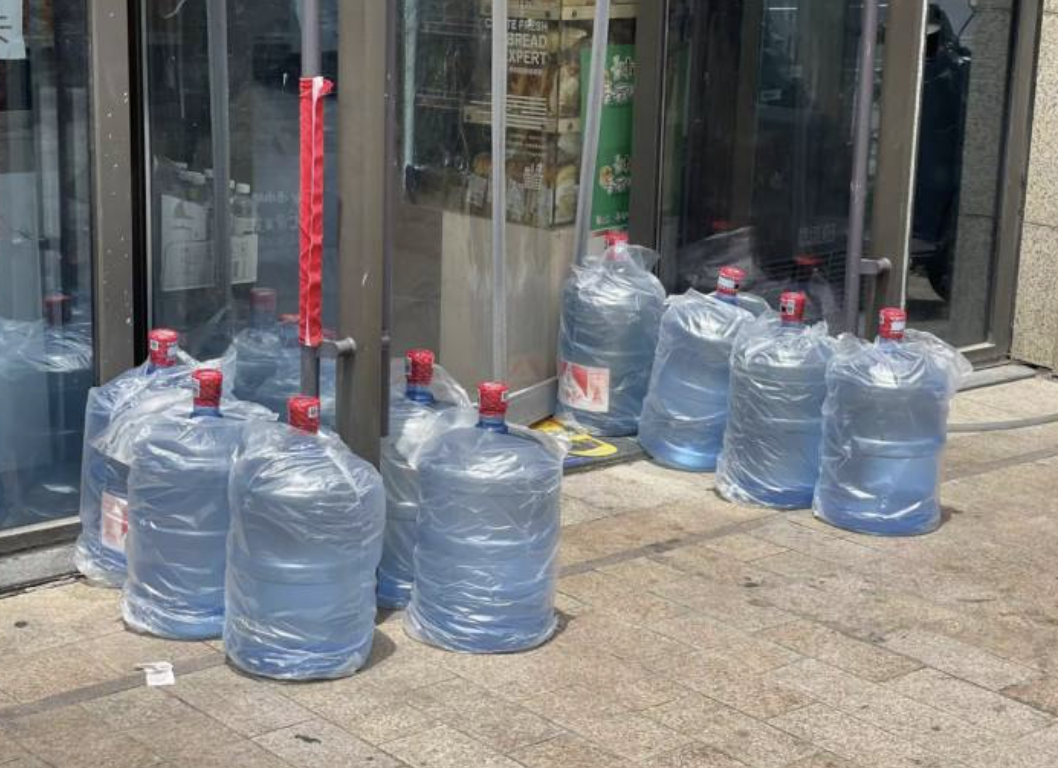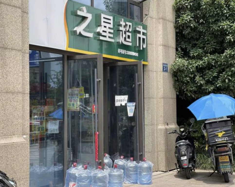 之星超市的门口放了十几桶大桶饮用水,每天都要补货的新鲜罐装水,最近创下了最高一天卖10桶的纪录。