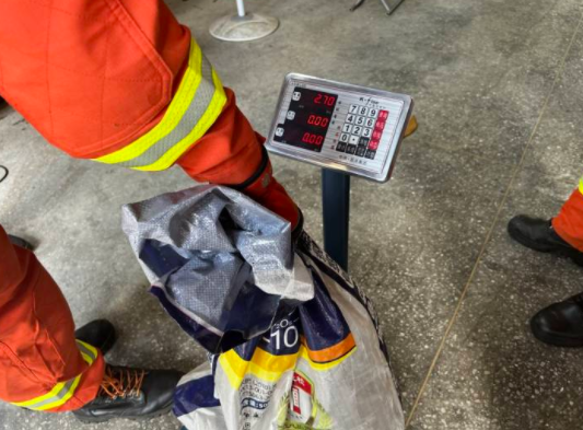 装入编织袋后,消防员从附近居民那儿借来了一把电子秤,称了一下,足足5.4斤。