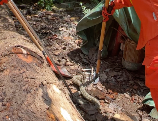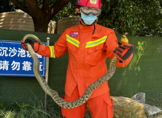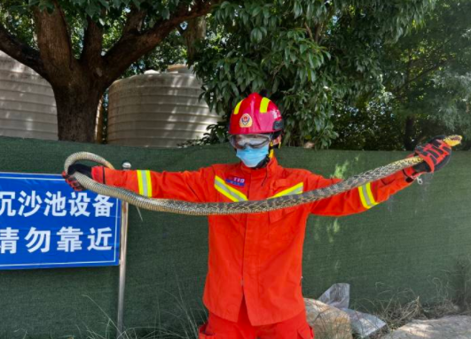 2米长、5斤多重!见多识广的消防小哥哥都惊到了,抓它还用上了钉耙