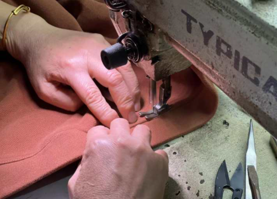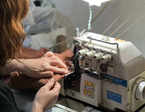 租的房子摆不下太多设备,只留了一台缝纫机,需要拷边,施丽琪要回到家门口的楼梯间。