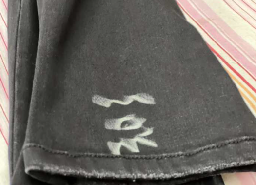 量尺寸、剪下长出来的那一截,把这两条牛仔裤子改短,还要把底下那一圈接边的布料再缝回去。