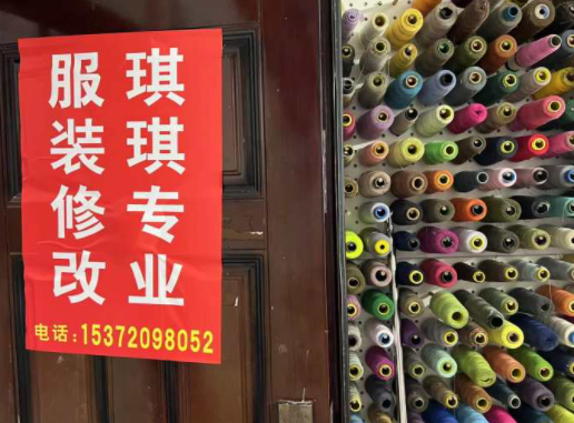 铺面不大,略显拥挤,墙上整整齐齐地排列着两百来种颜色的丝线,缝纫机时不时响起,主人手指翻飞下,一件件不那么合身的衣服会完成蜕变。