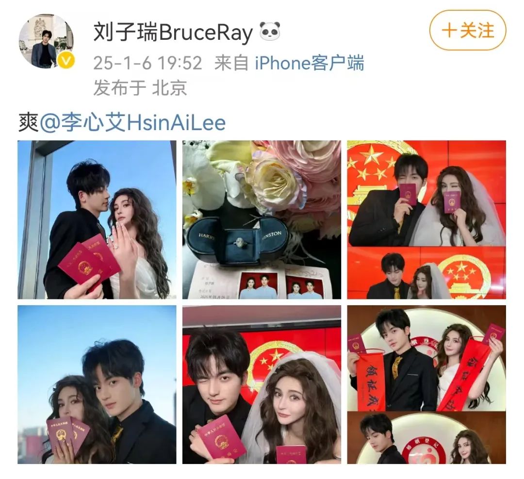 刚刚,演员李心艾与刘子瑞结婚的消息,冲上热搜第一。