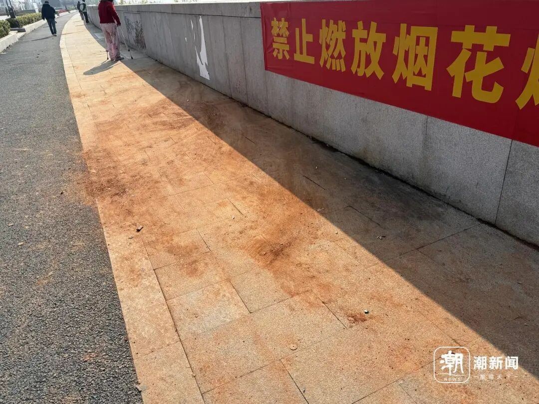 远远望去,原本整洁干净的海塘已“沾染”了烟花硫黄的痕迹,一片土黄色铺撒在路面,很是显眼。