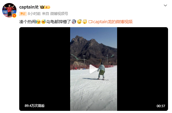 2月14日,马龙发布滑雪视频,配文称凑个热闹,乌龟都摔懵了。画面中他佩戴的小乌龟造型护具沾满积雪,幽默自嘲滑雪时多次摔倒的萌态逗笑网友。
