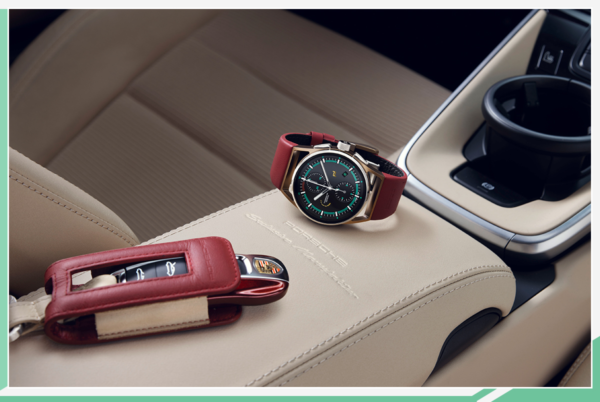 这款特别版计时码表的许多细节,汲取自富有传奇色彩的356和经典的911 Targa。例如,腕表采用的白色秒针和“磷绿色”表环从汽车车速表和转速表的设计中汲取灵感,小时标记采用了极具保时捷特色的字体。全新腕表的表带采用保时捷原厂内饰真皮制成,压印的“911”标志进一步彰显了其与经典跑车的联系。