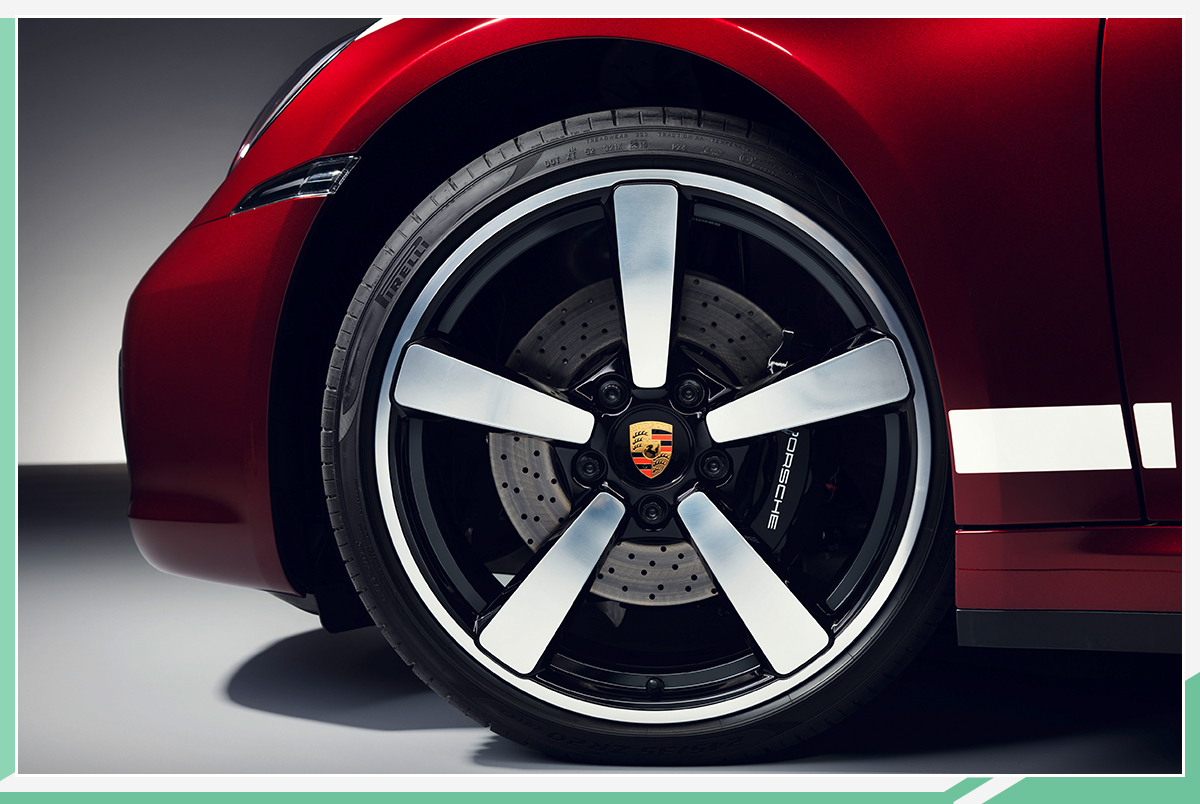 新车配备20英寸和21英寸Carrera Exclusive Design车轮,搭配经典的黑色制动卡钳。宽轮辐的表面和轮辋凸缘经过抛光,与涂黑色漆的轮辋和黑色轮辐边形成鲜明对比。轮辐设计成翼型或苜蓿叶形状,让人联想起伴随1967年款保时捷911S首度面世的Fuchs车轮。