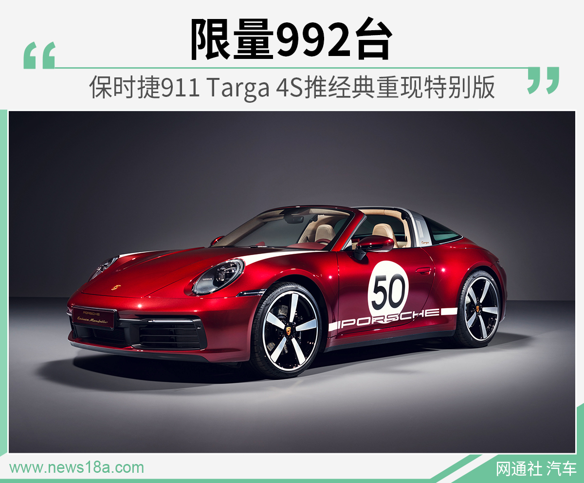 6月2日,保时捷推出911 Targa 4S Heritage Design Edition经典重现特别版车型。这款车由Porsche Exclusive Manufaktur打造,重新诠释了历史经典车型的外观和内饰设计元素,并采用最新技术。