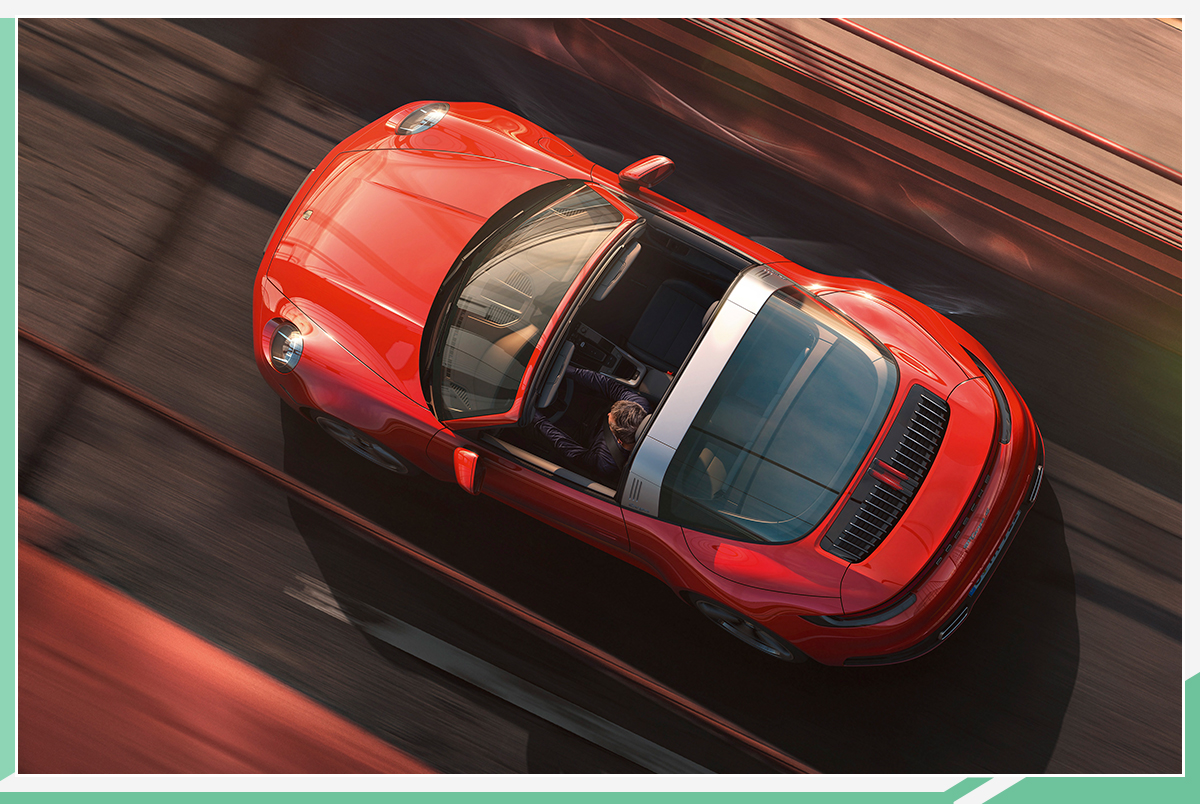 得益于更强大的电动执行器,车顶能够在19秒内全自动打开或关闭。按下按钮后,玻璃后窗升高,车顶打开。然后,与活动顶篷厢盖连接的车窗倾斜并向后移动。同时,Targa防滚架中的两个翼板打开,以发挥软顶的空气动力学性能。在打开过程中,软顶解锁后以Z字形向后方折叠并收入后排座椅后,Targa防滚架中的翼板和后窗再次关闭。