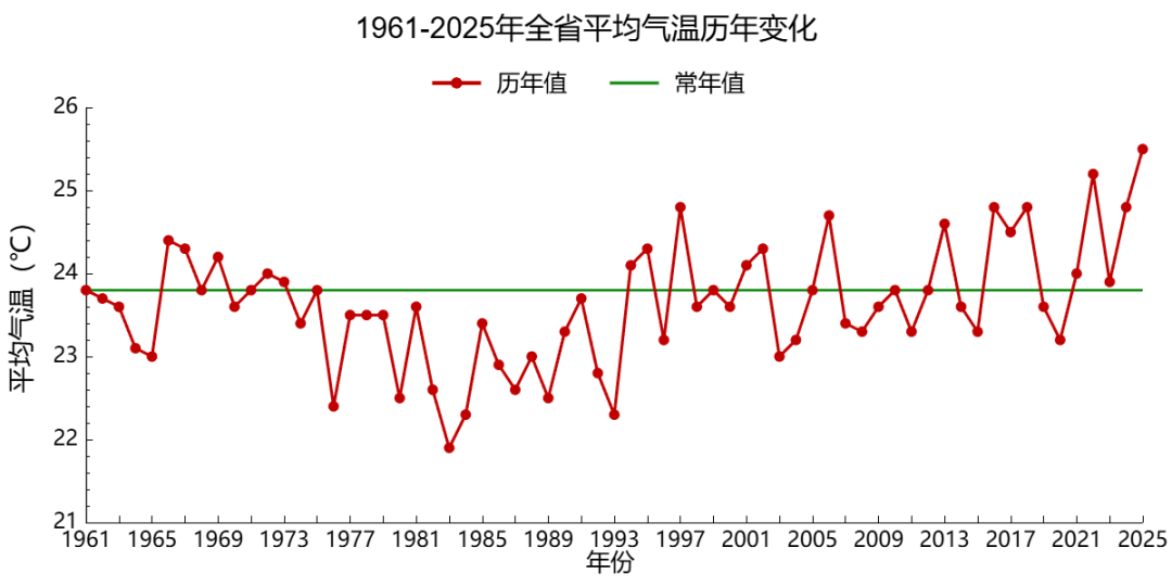 图2 陕西省1961-2025年夏季平均气温逐年变化