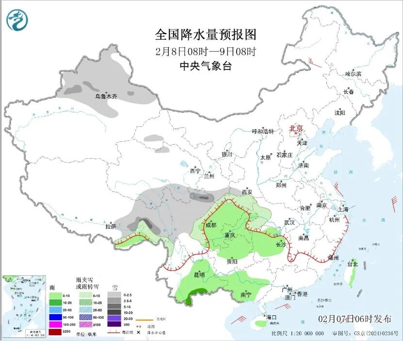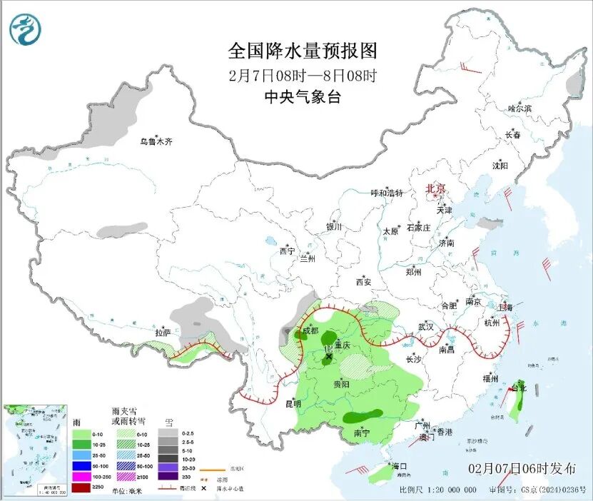 未来三天,西南地区东部、江汉、江南大部、华南大部等地将有小到中雨,部分地区有雨夹雪天气;西藏东部、青海南部、川西高原等地有小到中雪,局地大雪。