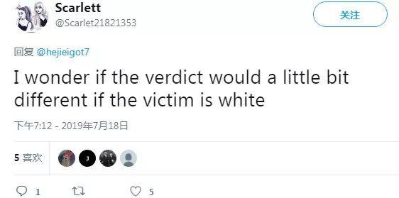 “我好奇,如果受害者是一位白人,判决结果是否会有点不同。”