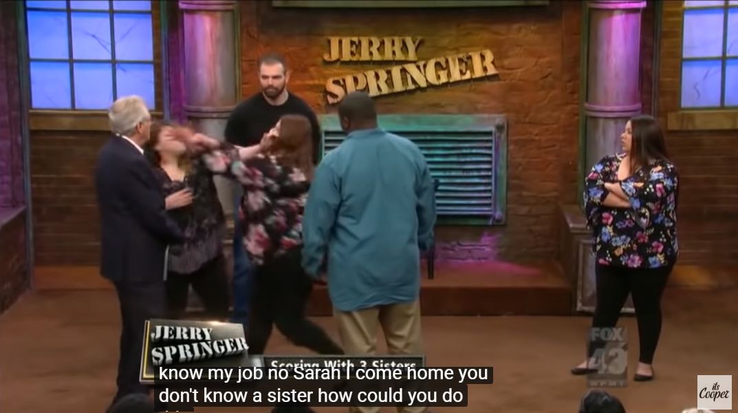 “杰瑞·斯普林格秀”最出名要数它那满屏脏话、过度打斗、出格裸体和奇葩故事了。 几乎每一集,都会因为有脏话而被哔哔消音 。