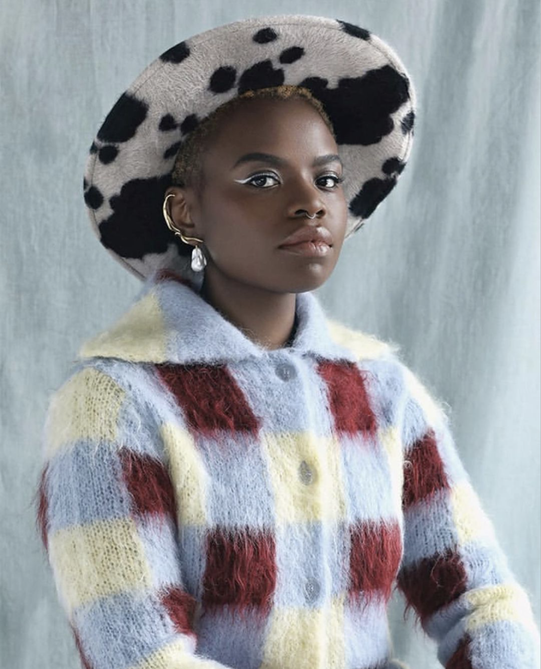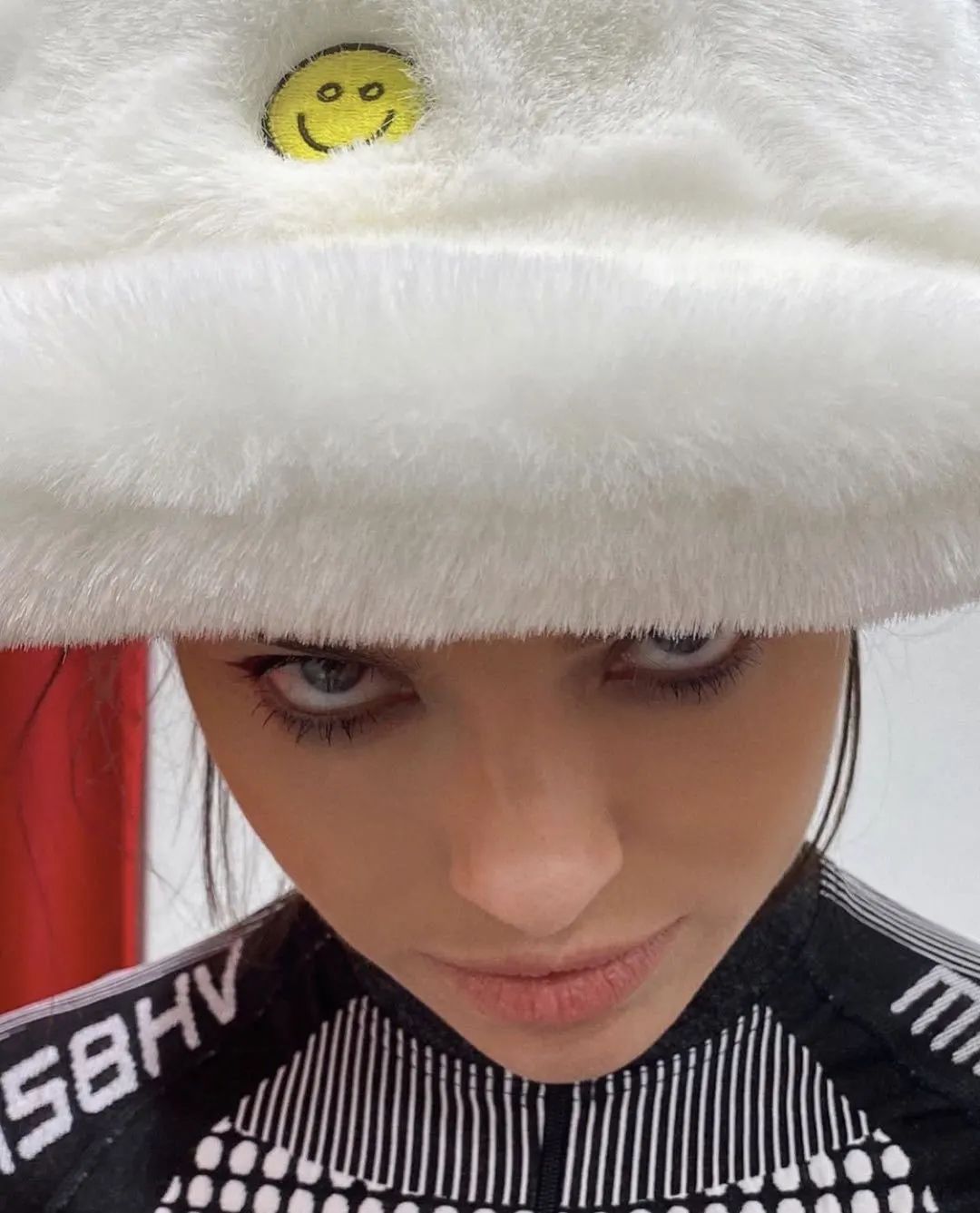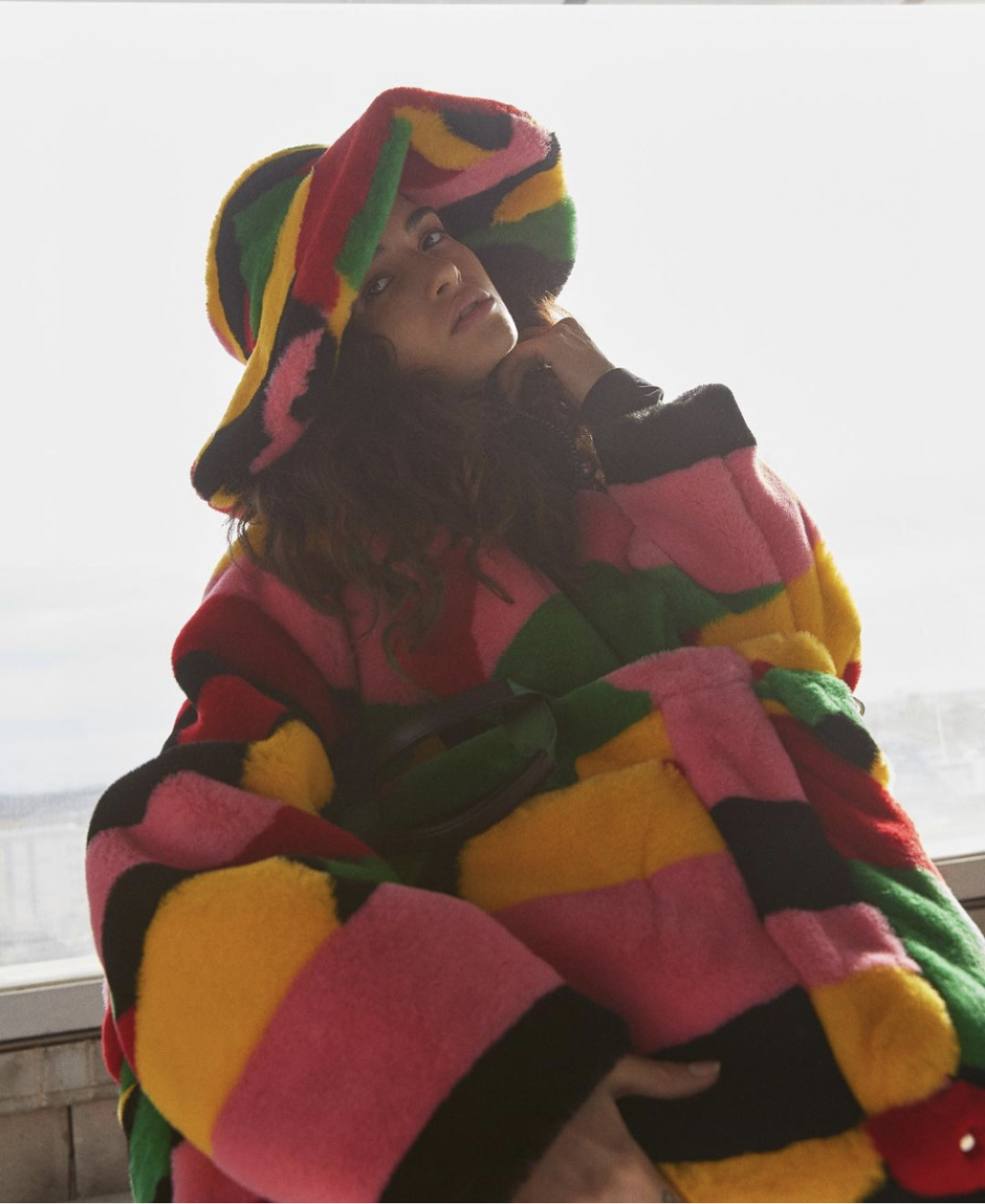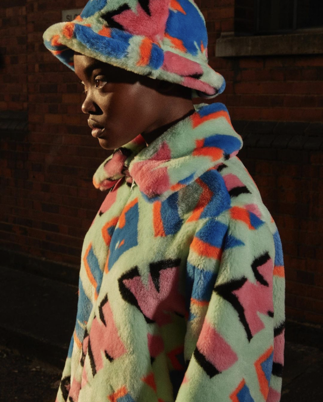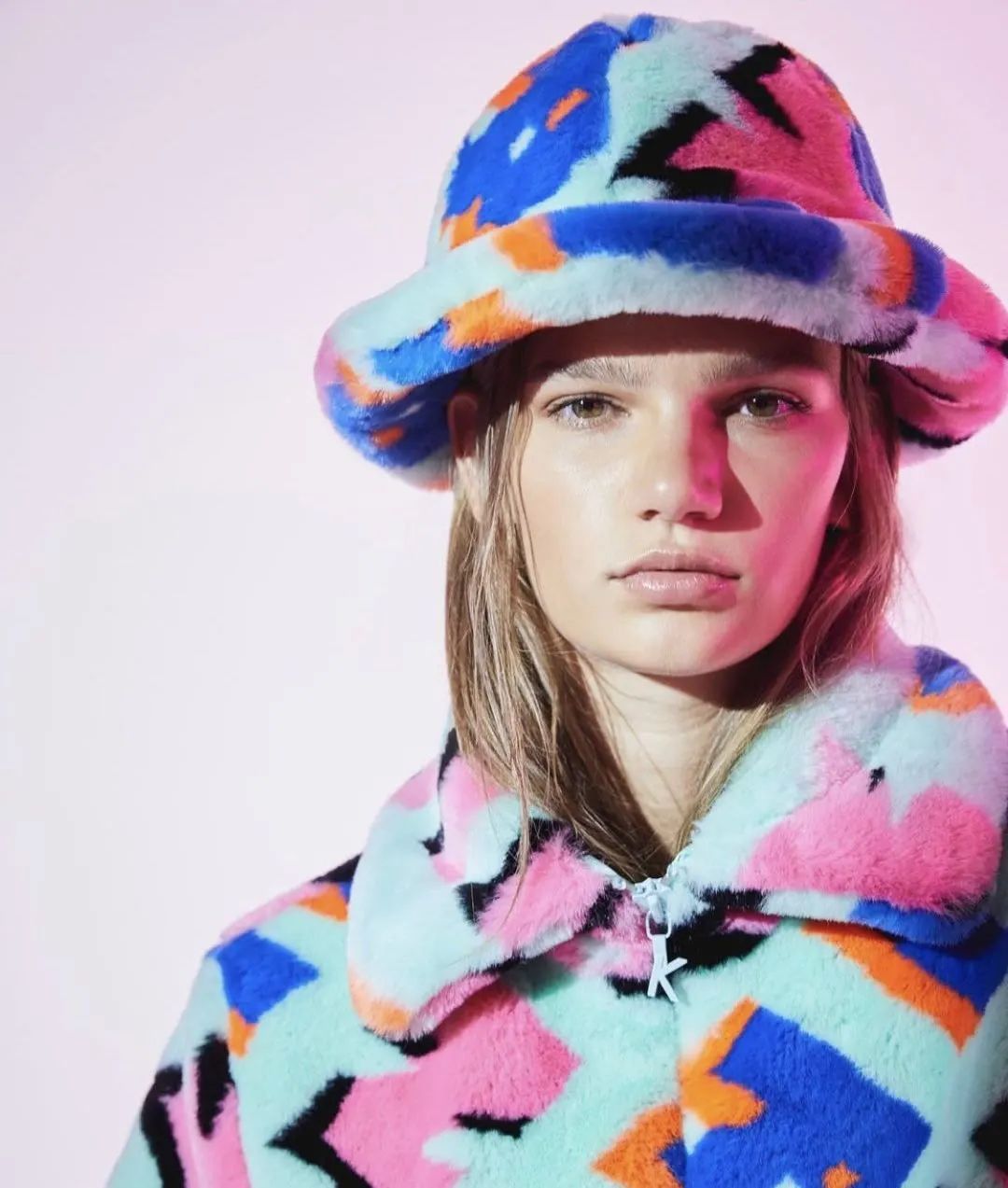 这款字母涂鸦款毛绒渔夫帽不要太受欢迎,模特Hope Gibson就赶紧来打卡了,搭配一身的毛绒元素,丰富的涂鸦使毛绒更有趣味,穿出秋冬的酷感。