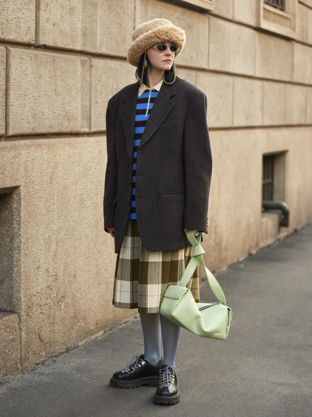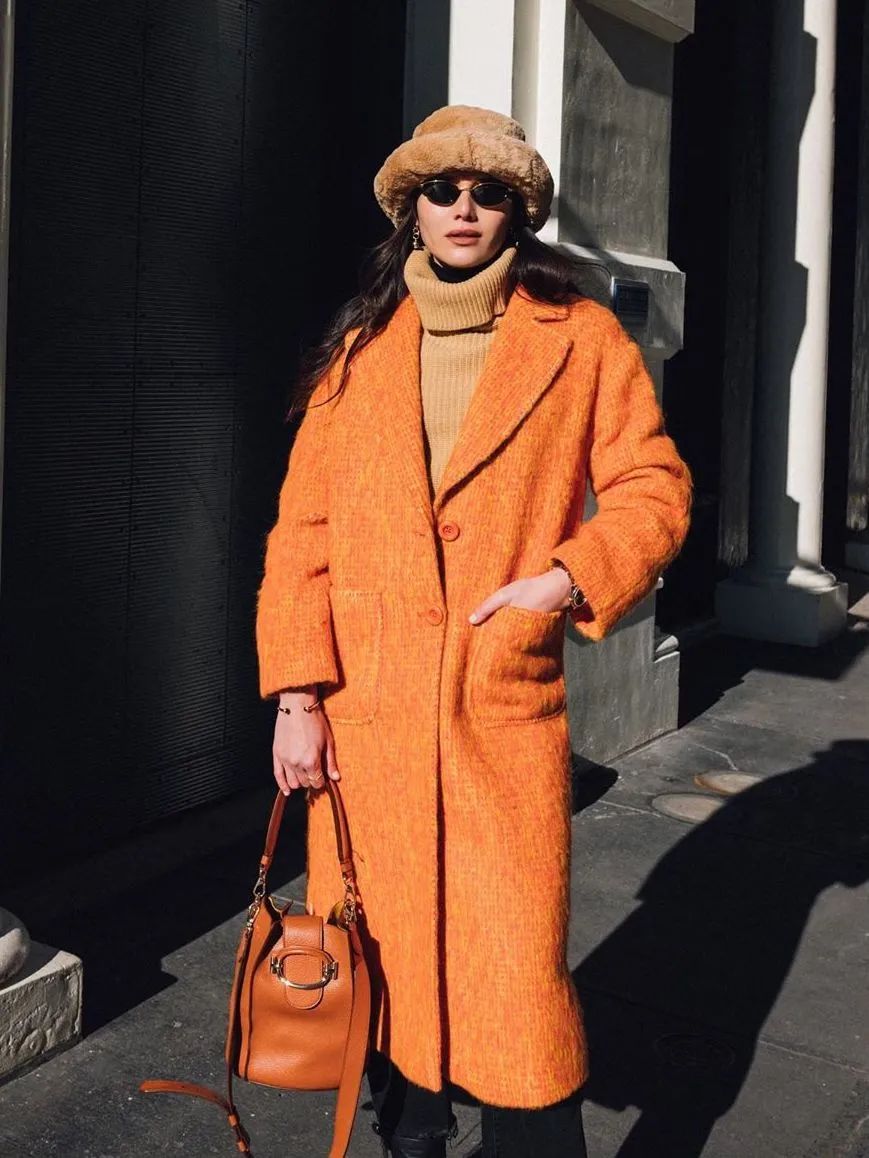 还有时装博主Alyssa,只穿大衣太单调?羊羔毛绒渔夫帽瞬间解决乏味感,同色系穿搭的精髓可谓是被她掌握得明明白白!