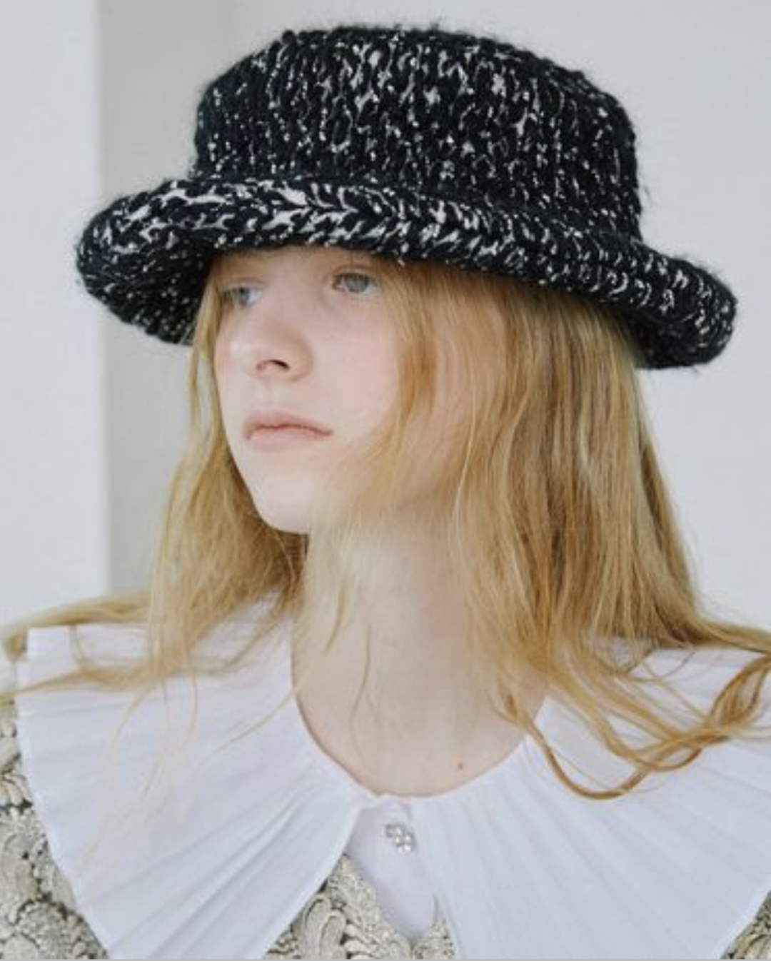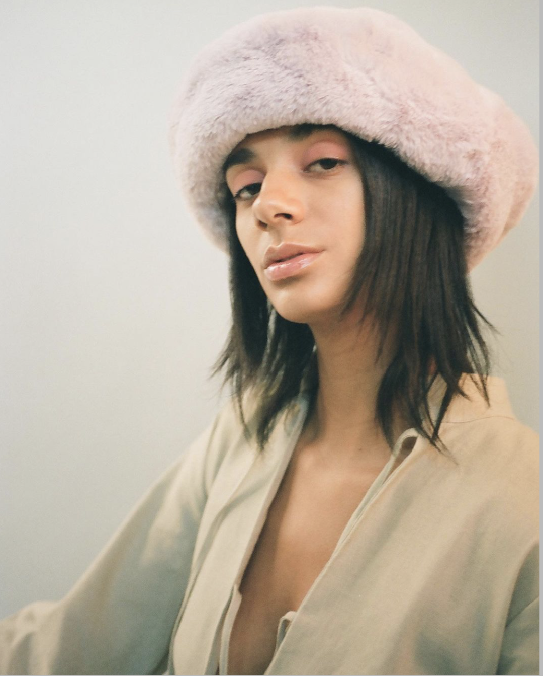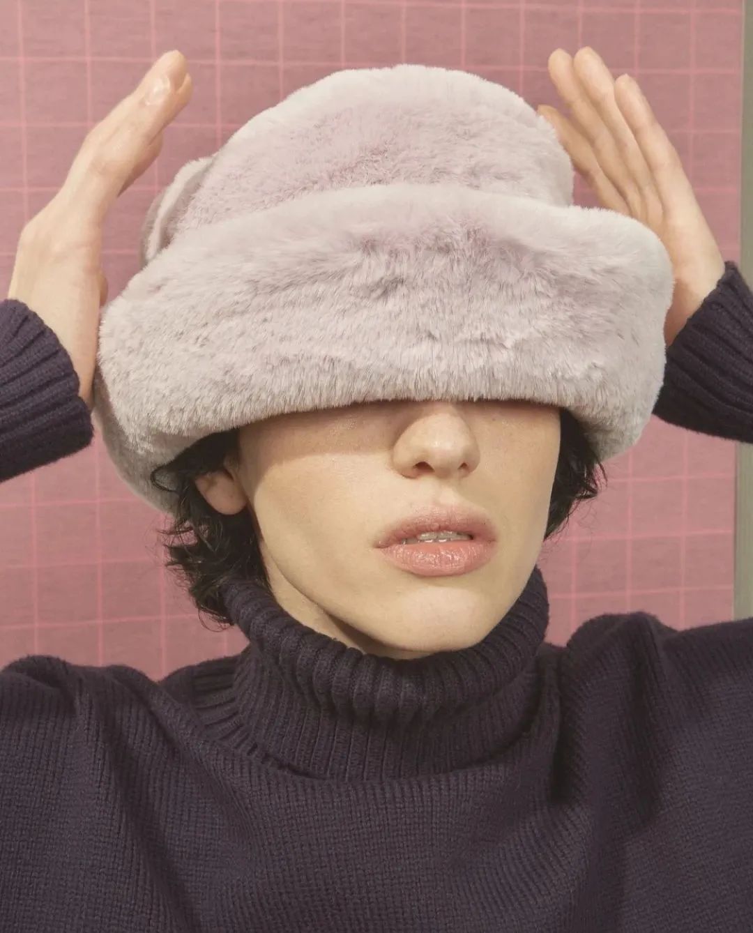 除此之外,直筒帽檐的渔夫帽也是它家的一大特色,收紧的帽檐更能勾勒脸部线条,只露出下半脸,超显脸小!浅驼色的毛绒渔夫帽戴在头上哪能不惹人怜爱!