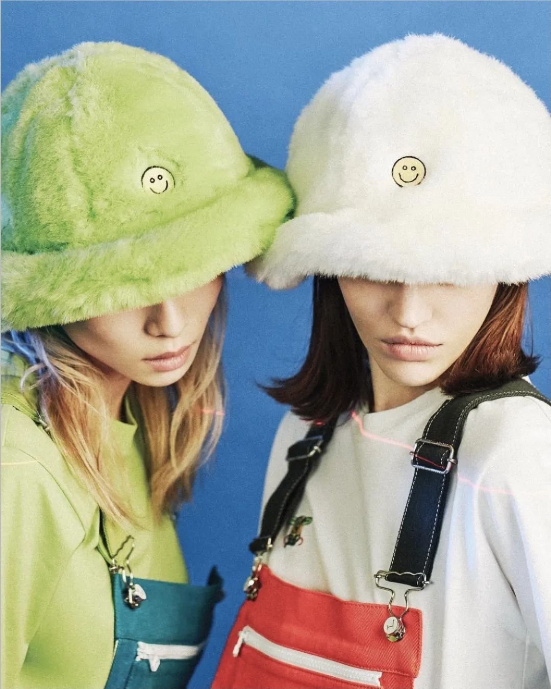更有街头意味的还有这款笑脸渔夫帽,白色款或绿色款的毛绒配以厚实帽檐极具造型感,加上经典的笑脸,碰撞出经典的街头潮流文化。随便搭配一件卫衣或者外套就可以出门炸街了!