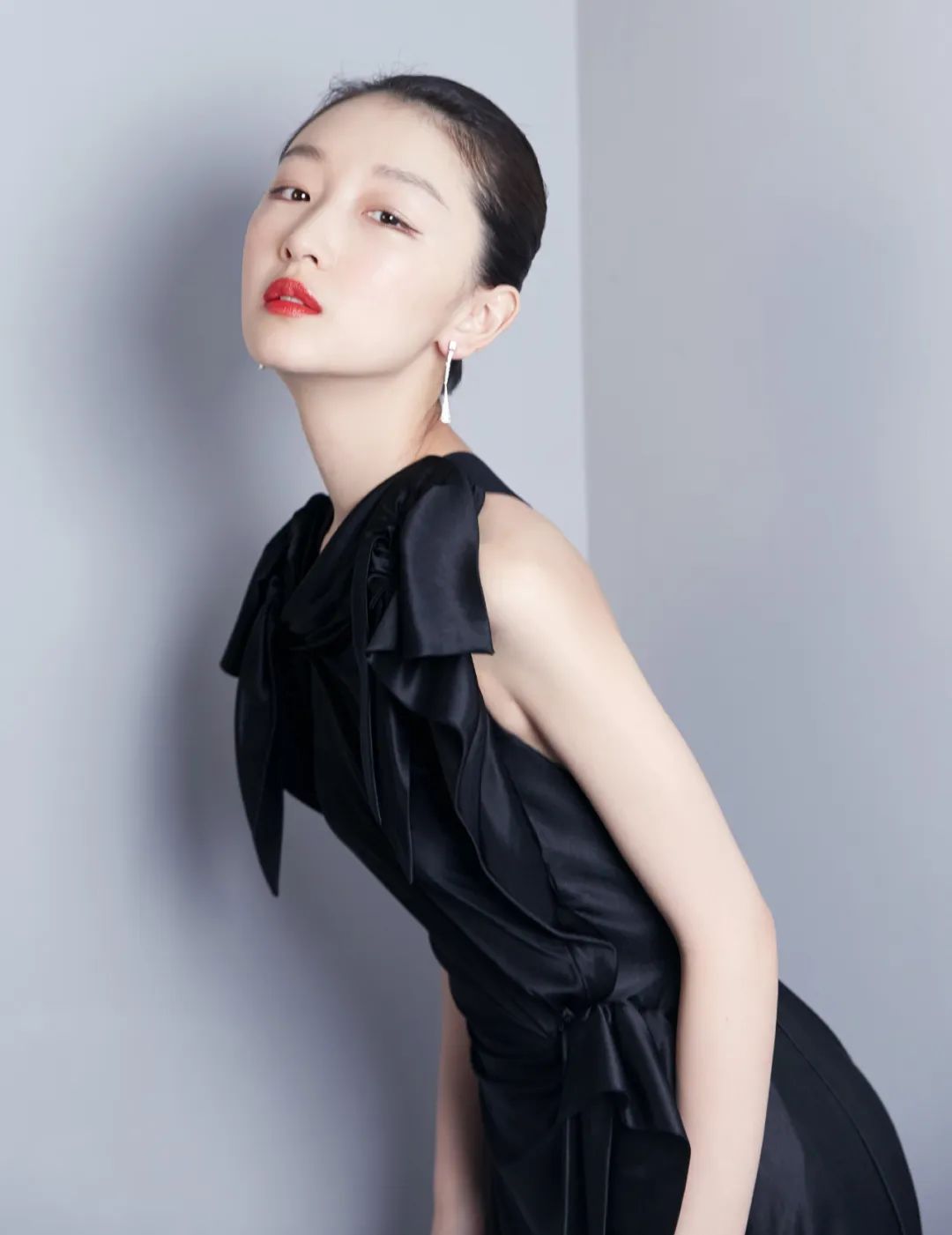 身穿黑色小礼裙的她,会选择不抢眼的清透自然系妆容。淡粉色细闪眼影贴着睫毛根部涂抹,细细的眼线向上轻挑,下眼线从下眼睑中部向后延伸,远看仿佛灵动的“鱼尾”,让整个妆容更活泼。