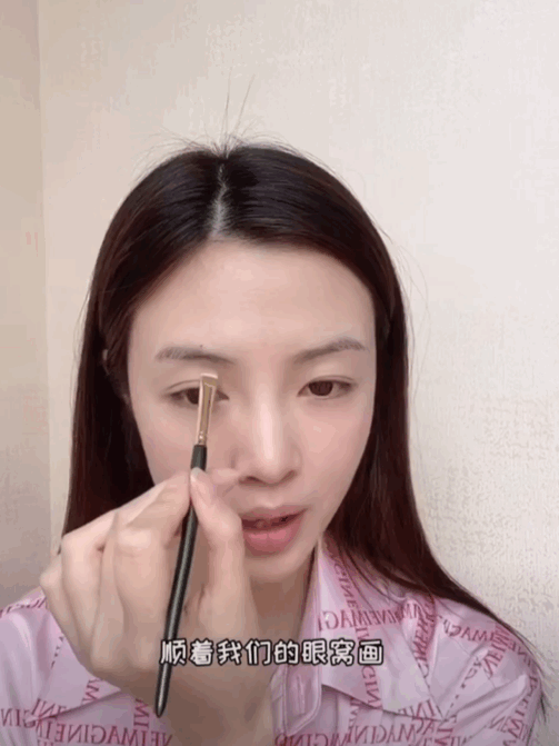 大部分单眼皮的女生眼窝比较平,所以我们要自行打造一个眼窝,使眼睛更深邃。