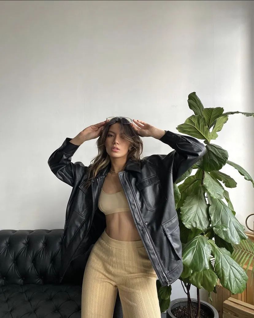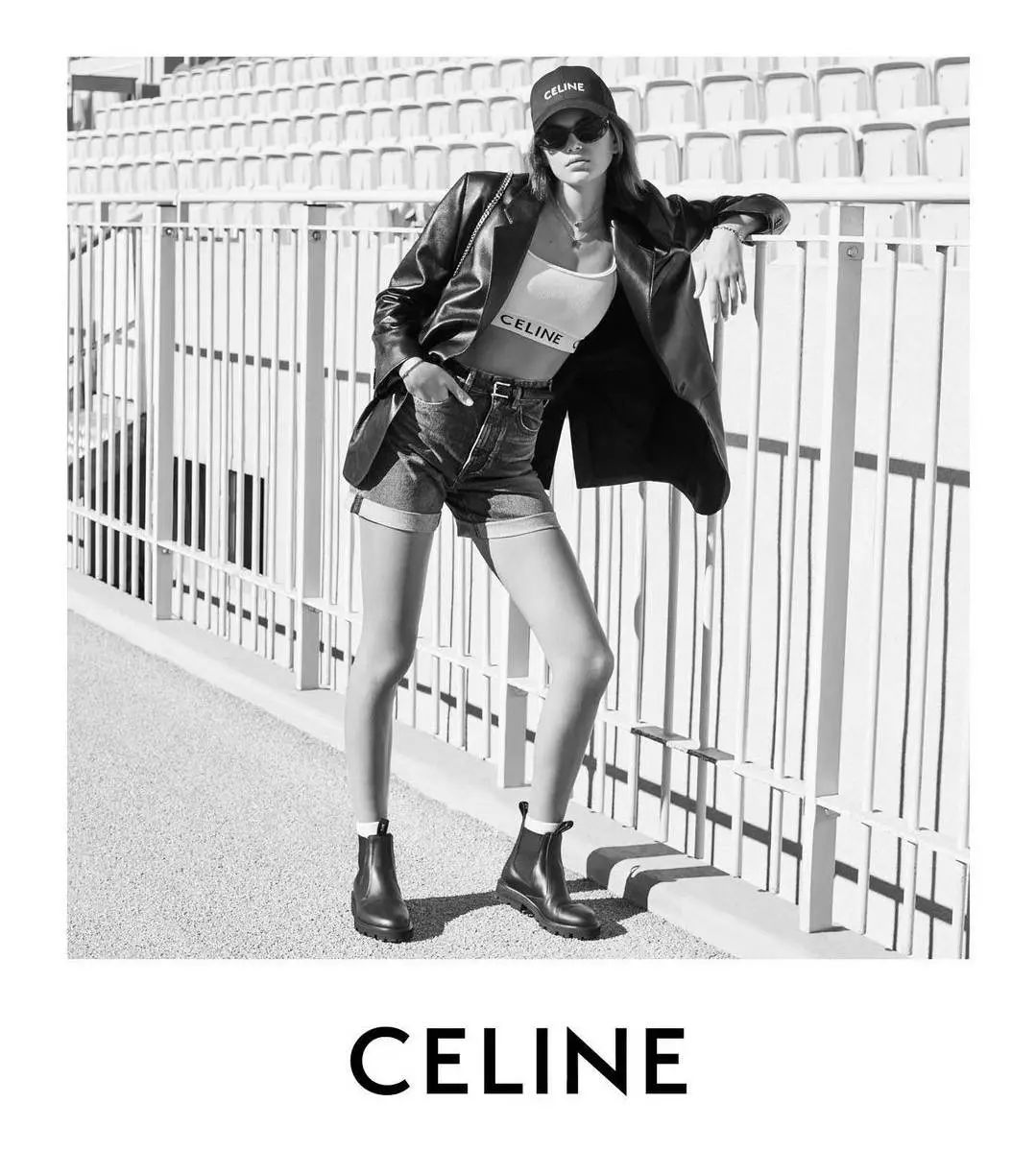 作为CELINE的全球品牌大使,Lisa的穿搭可以说是所有CELINE女孩的模板了。羊皮革夹克内搭针织吊带背心再配上一顶棒球帽,简洁飒爽的运动风酷女孩。