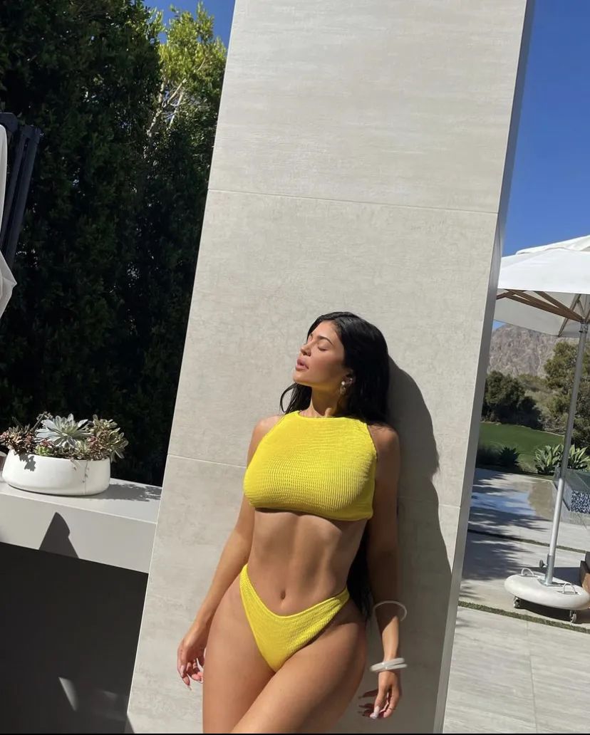 Kylie身上这种就是粗针织背心,荧光色的短款背心在夏天去海边出片率肯定极高。