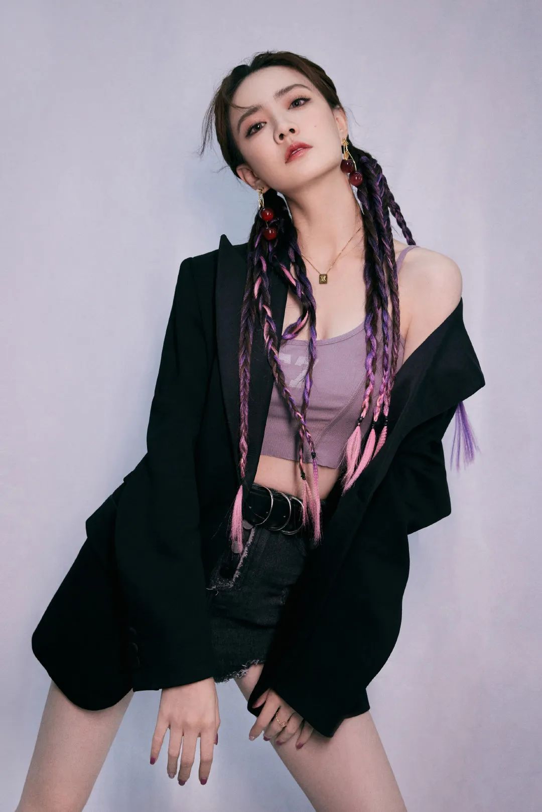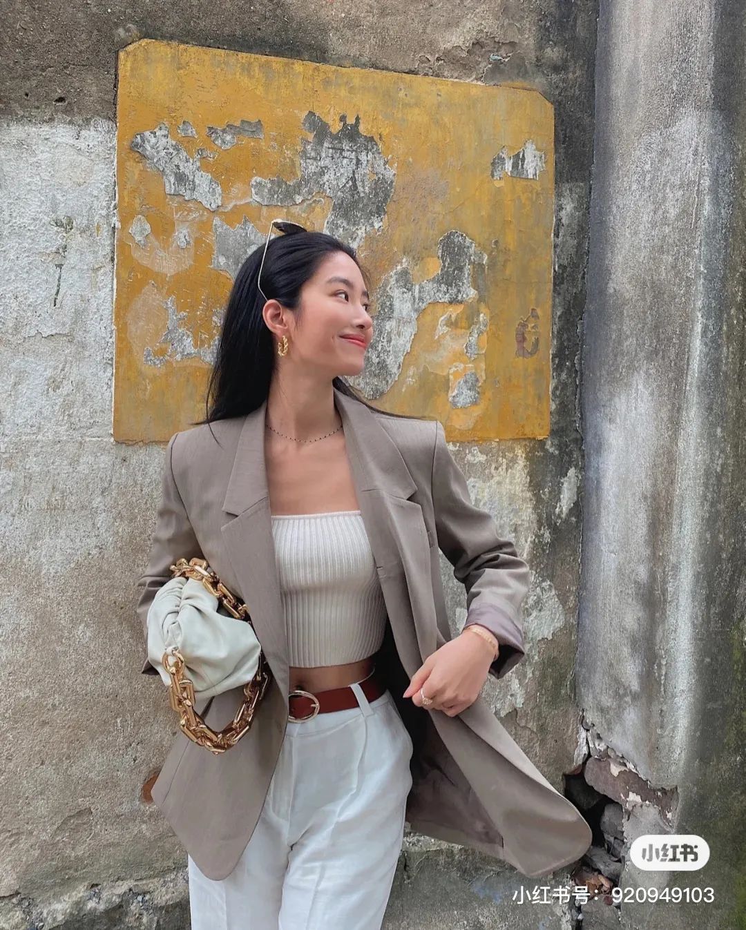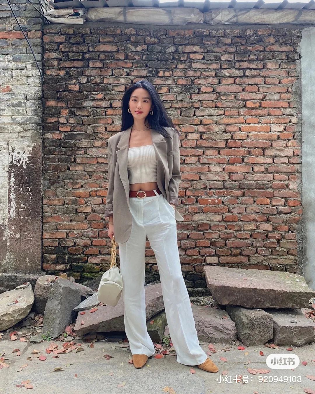 的短款背心,搭配冷色系西装外套,轻轻松松穿出高级感。