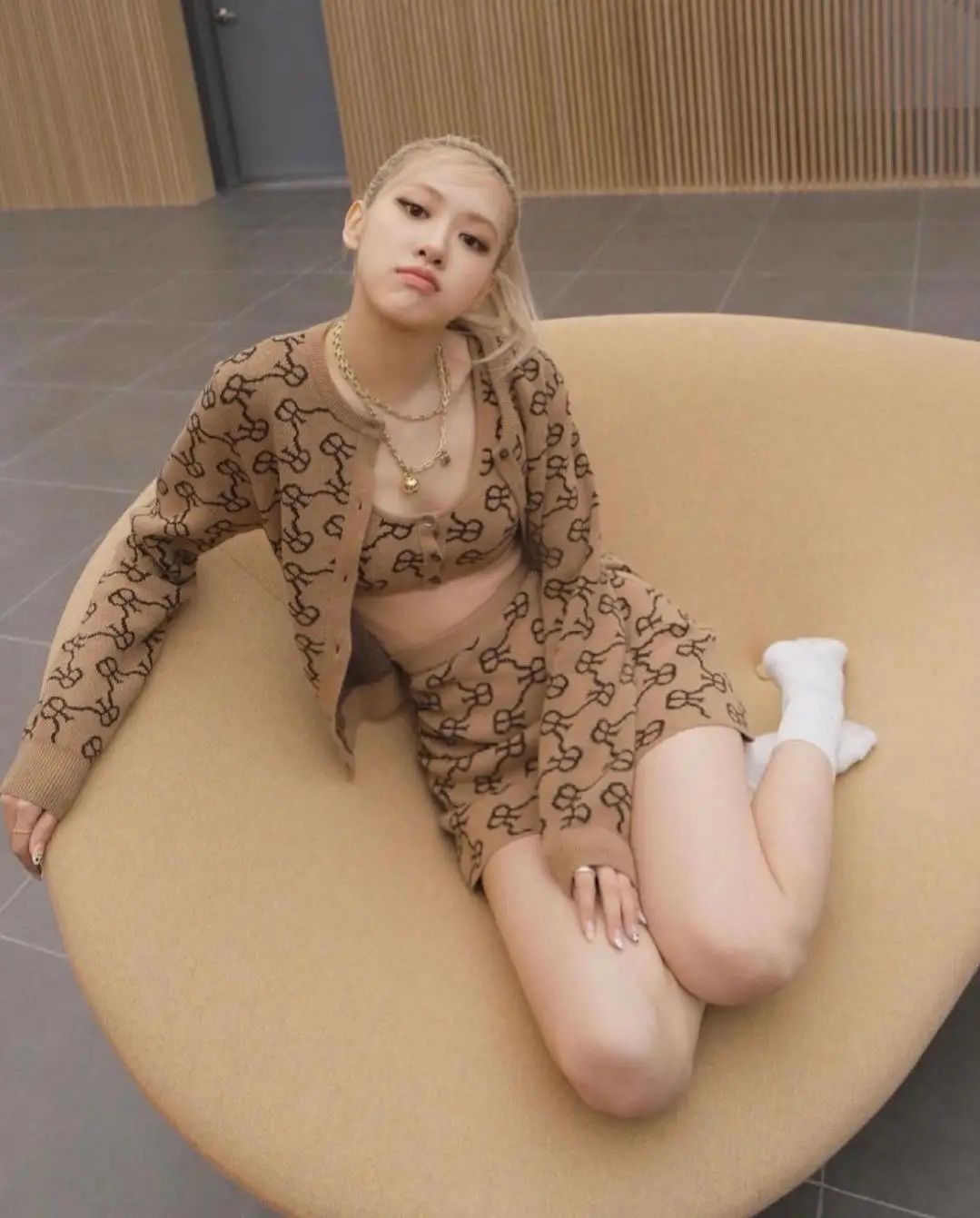 当然短款背心不只有性感风,Rosé这件针织的Logo款背心也可以穿出温柔的感觉。