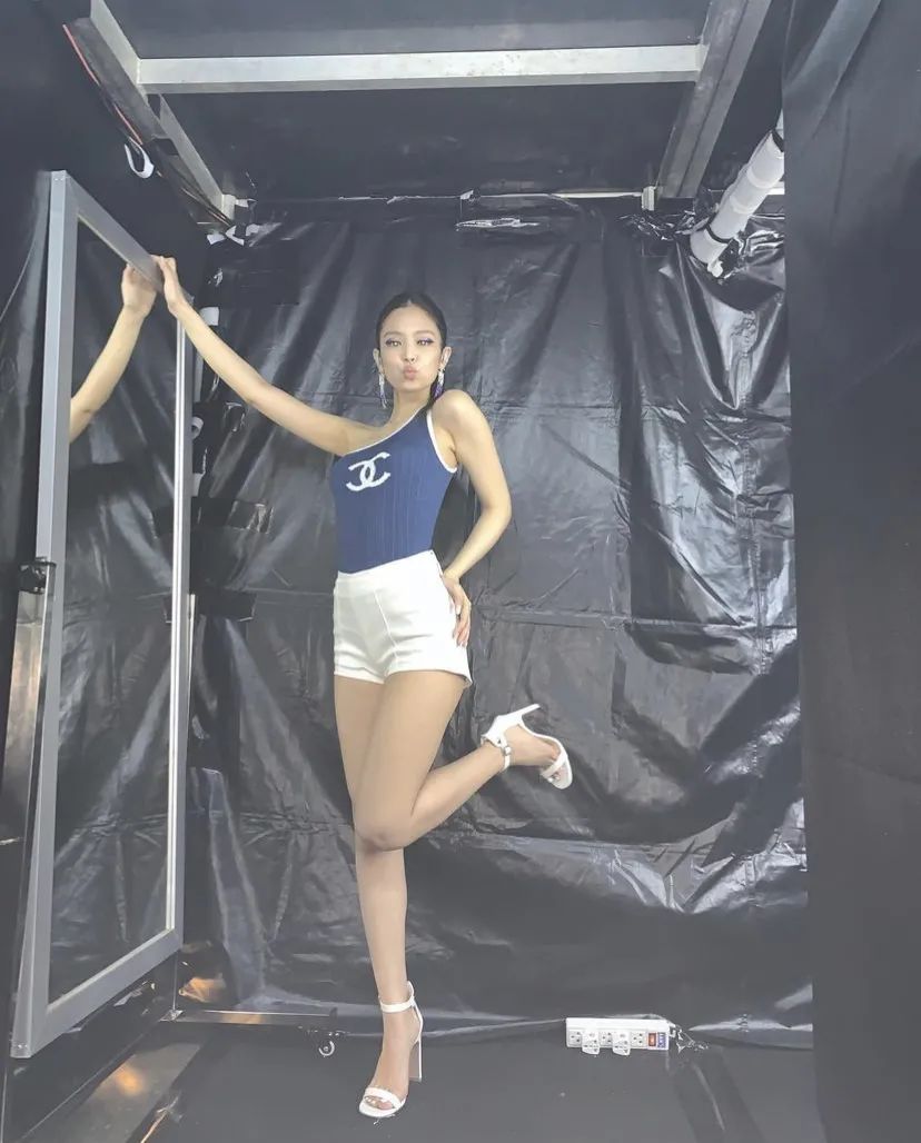 时髦精Jennie早就穿上了Chanel的单肩背心,不规则的设计多了一些俏皮可爱。