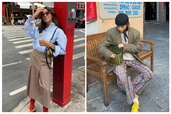将条纹与格纹这两种经典图案进行混搭,能轻松穿出别具一格的美式复古风味。关键在于协调图案的粗细与大小,一种方式是上身细密条纹搭配下身简约格纹,另一种则可尝试不同大小拼贴感的格纹互相组合,这样“乱中有序”的搭配,好穿且充满巧思。