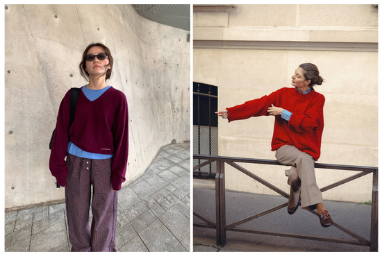 用一件厚实温暖的毛衣搭配裙装,无论是灵动的百褶裙,还是酷感十足的皮裙,都十分耐看,再用一双醒目的红色长袜或具有反差感的舒适运动鞋来点亮全身,瞬间提升造型感。
