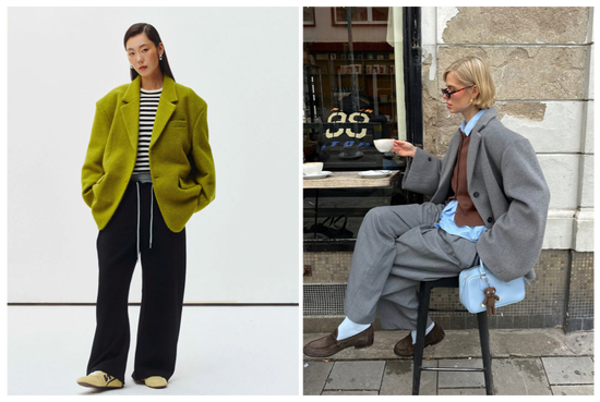 呢子西装外套独特的厚重质感,有种结结实实的包裹与温暖。摒弃常见的深色系,选择柔和和低饱和的色彩,可以打破沉闷的氛围,而且这种材质的西装本身轮廓感极强,所以还能轻松塑造出丰富的层次感。