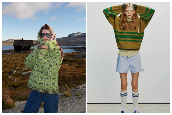 粗线毛衣以其质朴的手工感,本身就带着一种可爱的气息。当灵动的色彩在其中交错编织,便瞬间唤醒了20世纪80年代美式校园的复古时髦感,再搭配一双舒适的运动球鞋,整体造型看起来轻松又充满活力。
